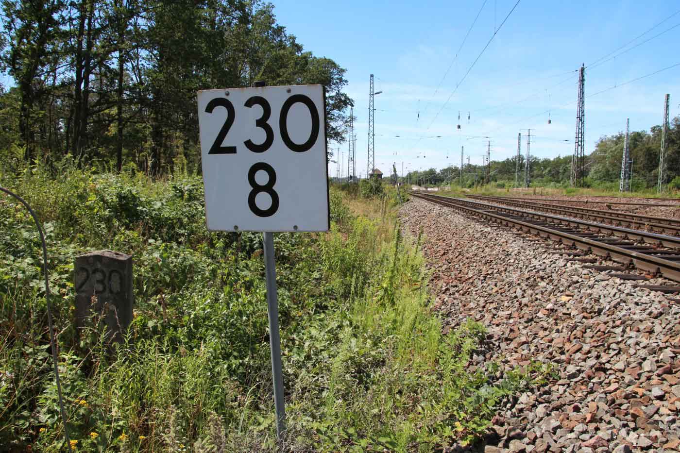 km 233,6 (rechts hinter dem Oberleitungsmast) in Roßlau (Elbe) - Detail