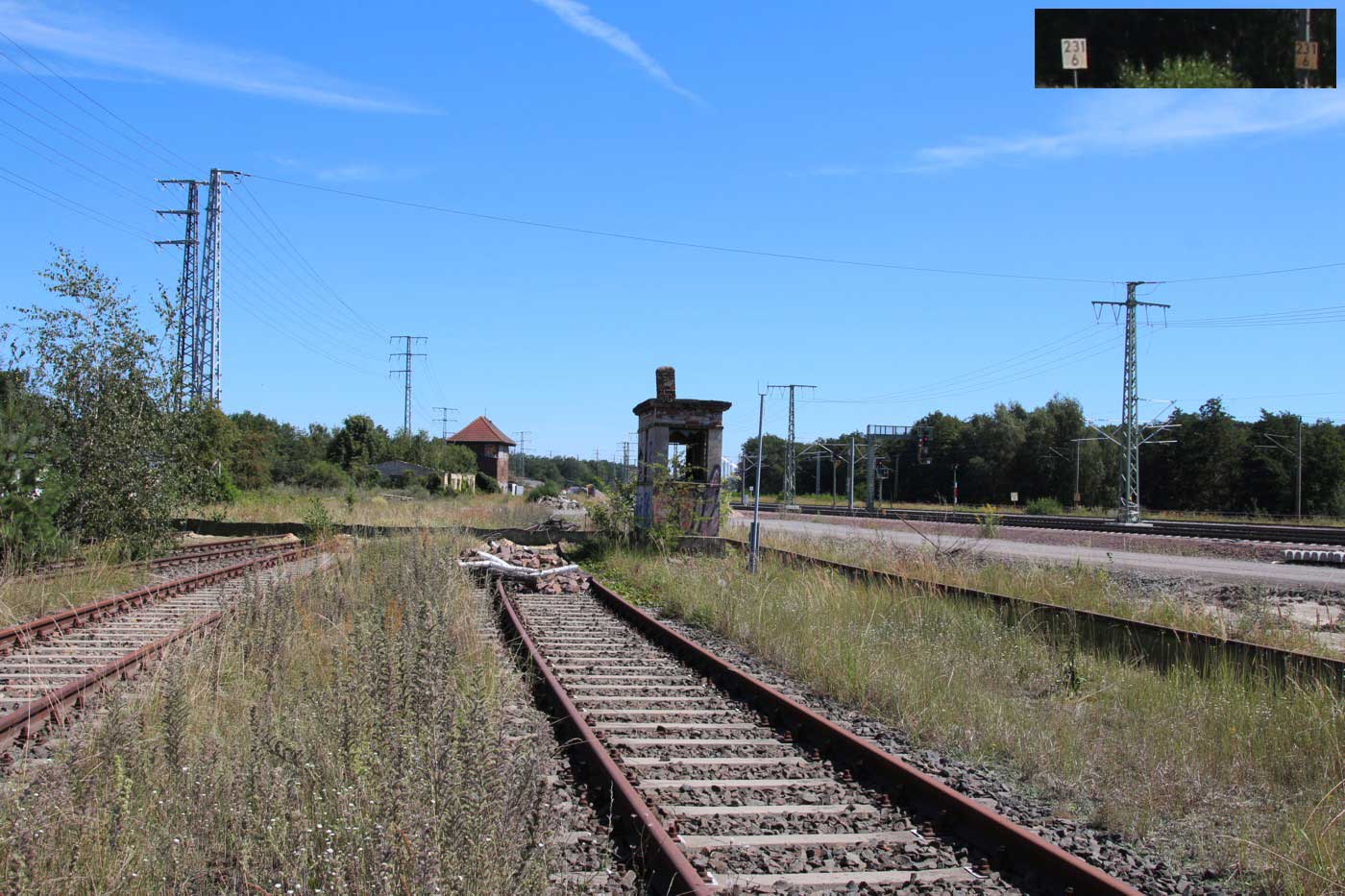 km 26,4 (links) gehört zum Gegenrichtungsgleis der Strecke Wiesenburg (Mark) 0,0 - Meinsdorf 26,9 - [Roßlau (Elbe) 29,55]