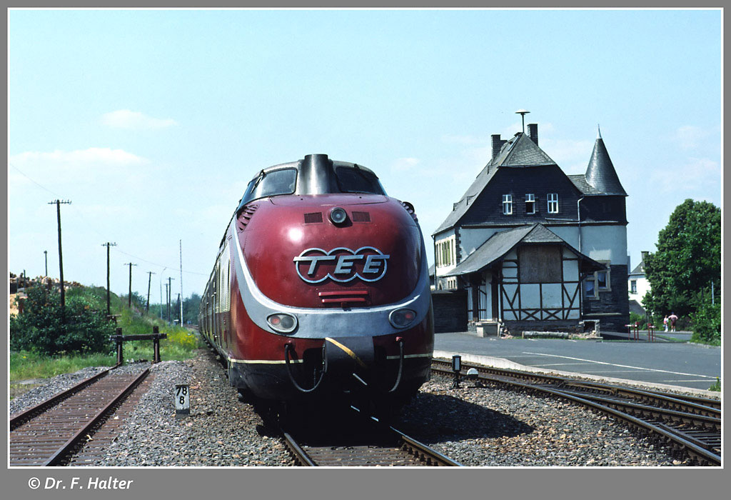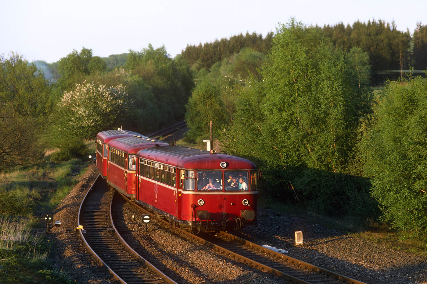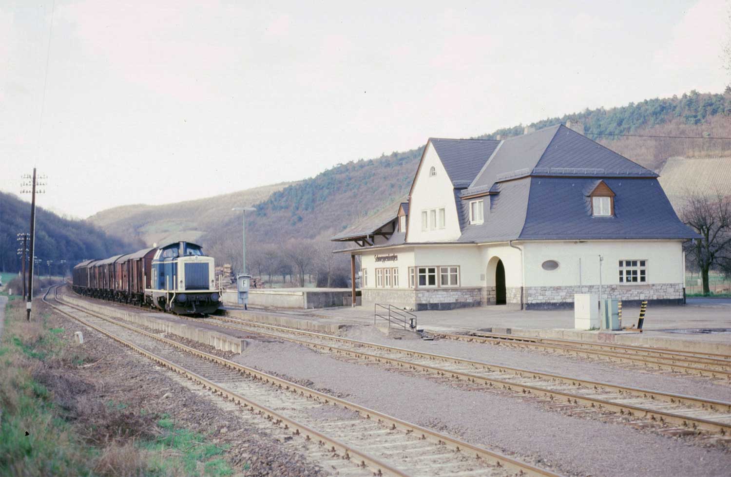 Am 20. Mai 1977 rollte gegen 13.05 Uhr auf Gleis 2 verspätet der 6879 (Boppard 11.28 – 12.59 Simmern) mit 798 540 und einem 998 an der Spitze herein.