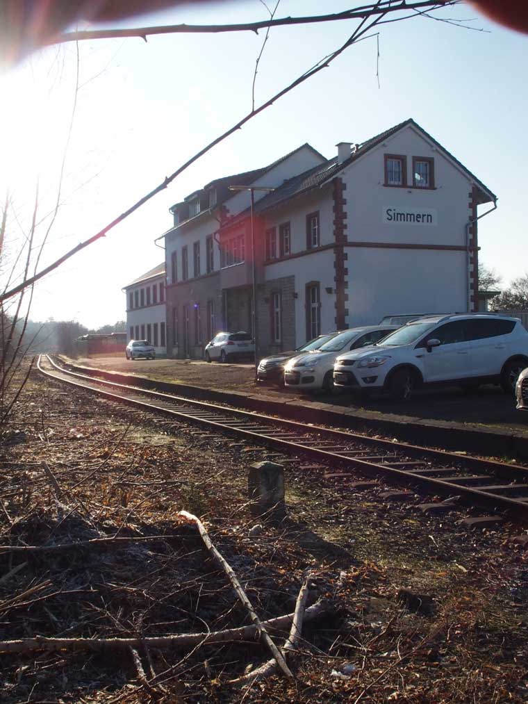 | km 0,0 der Strecke Simmern 0,0 - Gemünden Ag [auch: Gemünden (Hunsrück)] 14,7 | ||