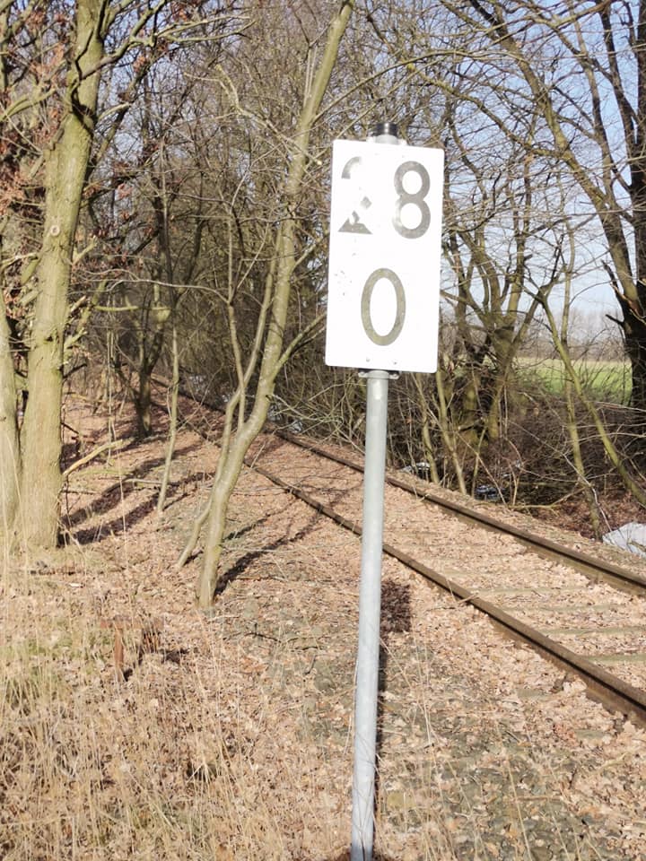 km 66,3 (etwas versteckt) gehört zur Strecke Bünde (Westf) 0,0 - Lübbecke (Westf) 18,53 - Rahden (Kr Lübbecke) 33,00 - Sulingen (Han) 66,38 - Bassum 86,82