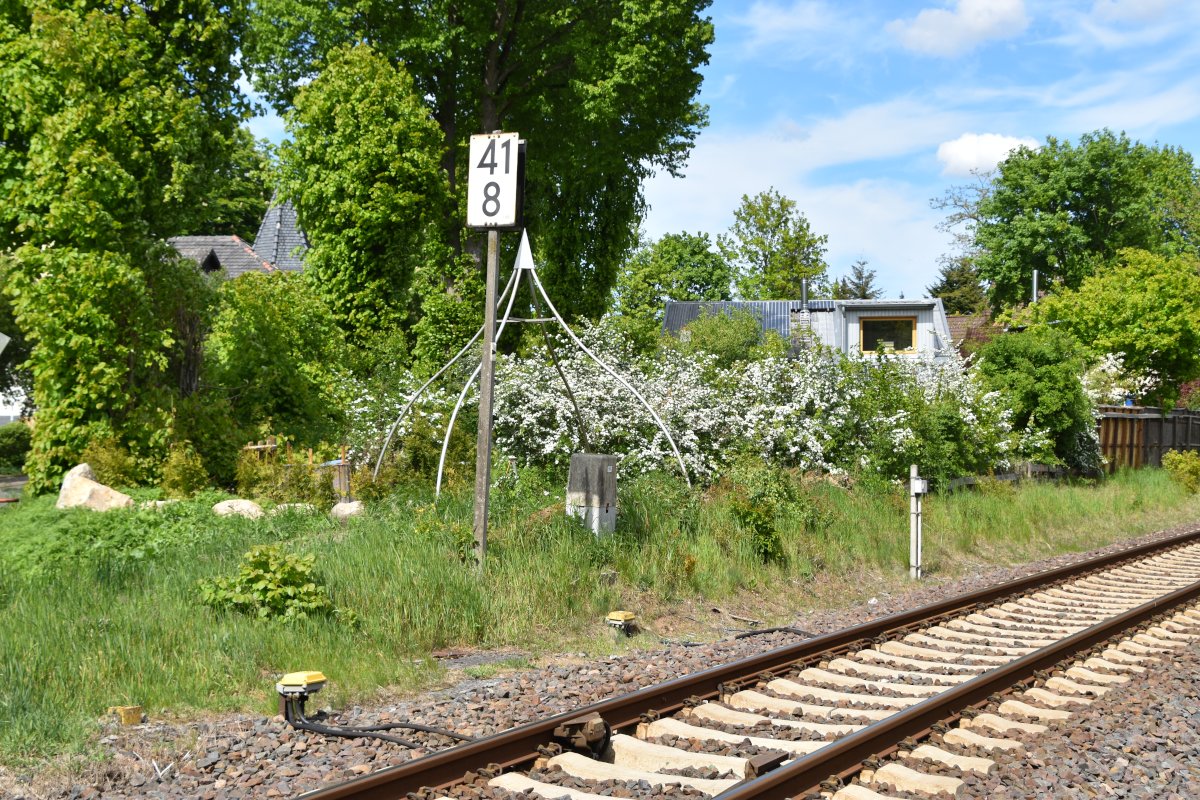 | km -1,63 der Strecke Lübeck Hbf -1,63 - Büchen 47,61 (Die Angabe km -1,63 sollte die Überlänge bei km 4,0/4,2 korrigieren, wurde aber vor Ort wahrscheinlich nie ausgeführt.) | ||