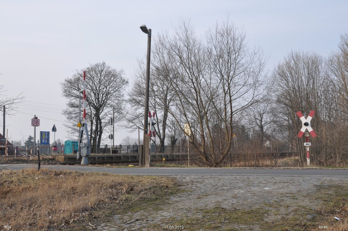 | km 45,5 der Strecke Aschersleben Hecklinger Straße - Aschersleben Nord 0,0 - Schneidlingen Kleinbf 22,3 - Nienhagen Süd 45,5 [Aschersleben-Schneidlingen-Nienhagener Eisenbahn AG (ASN)] | ||