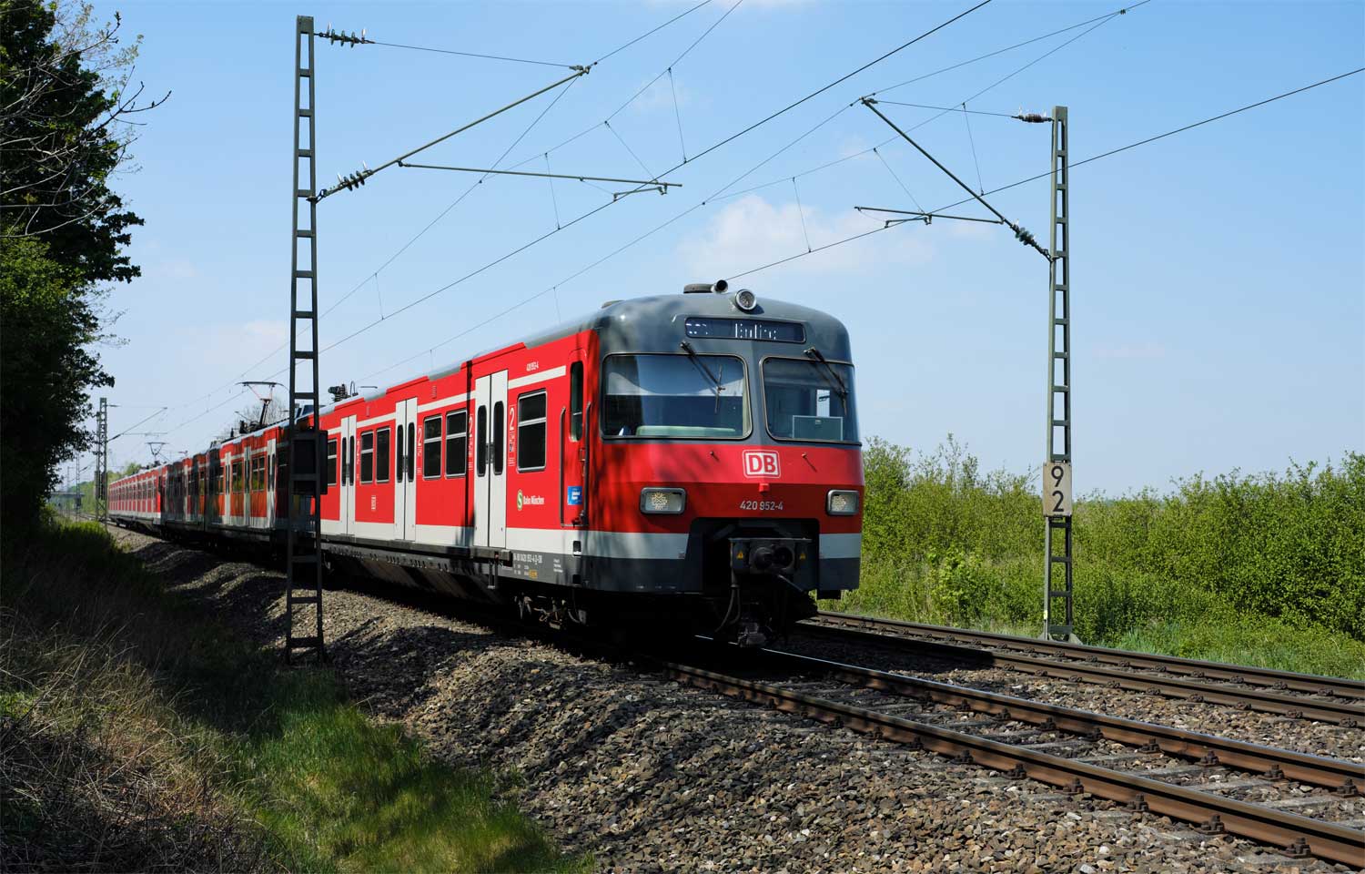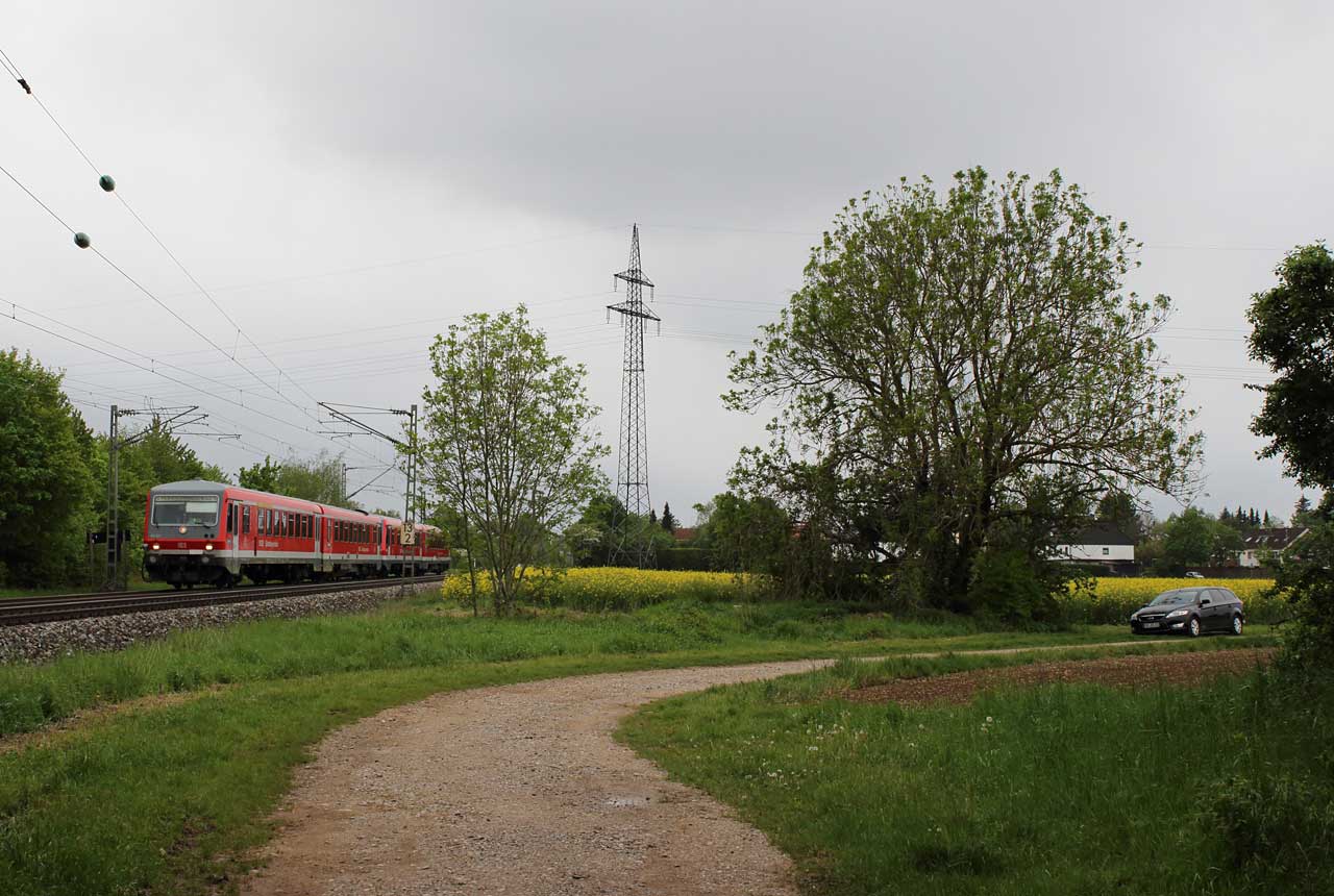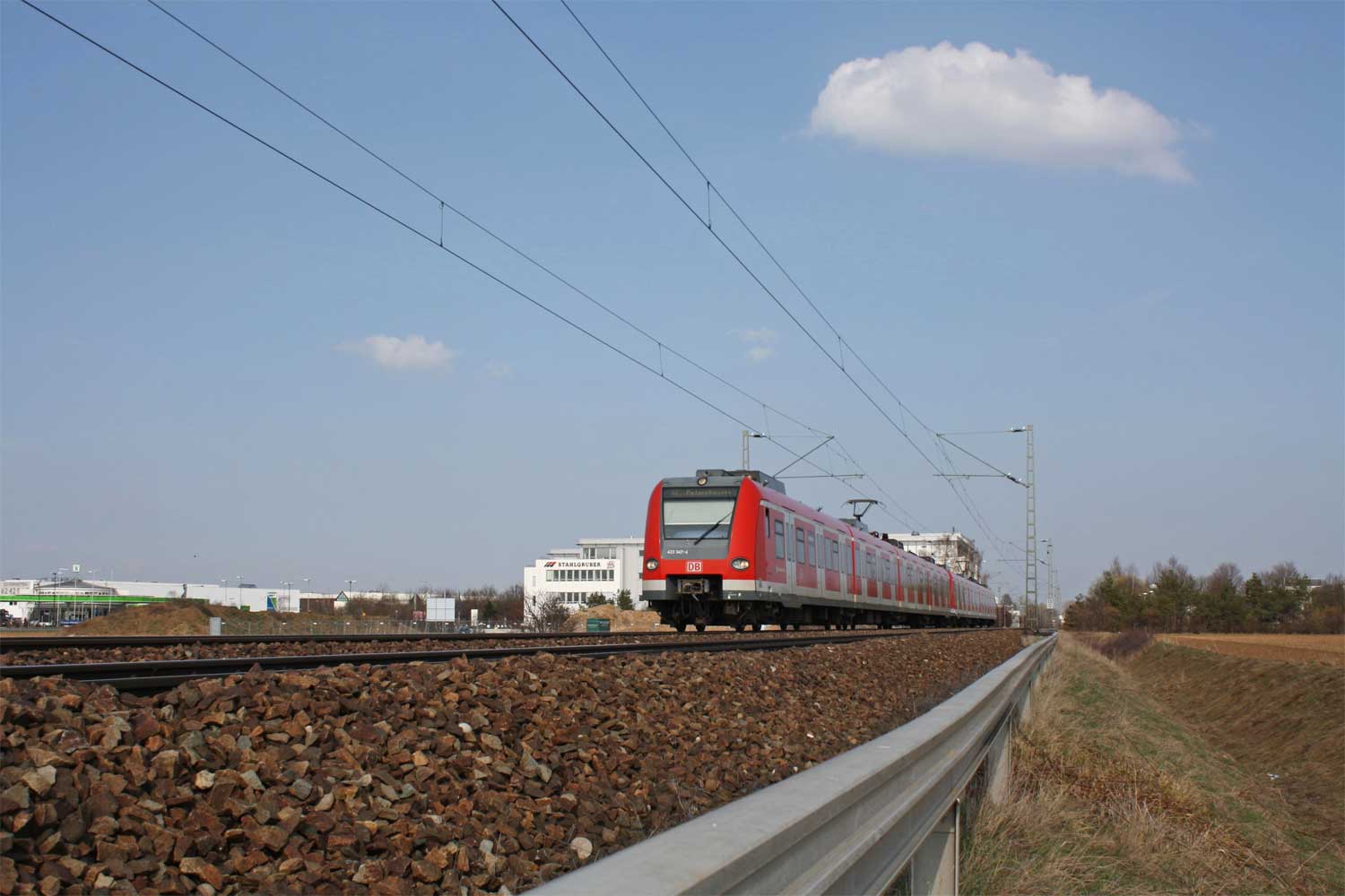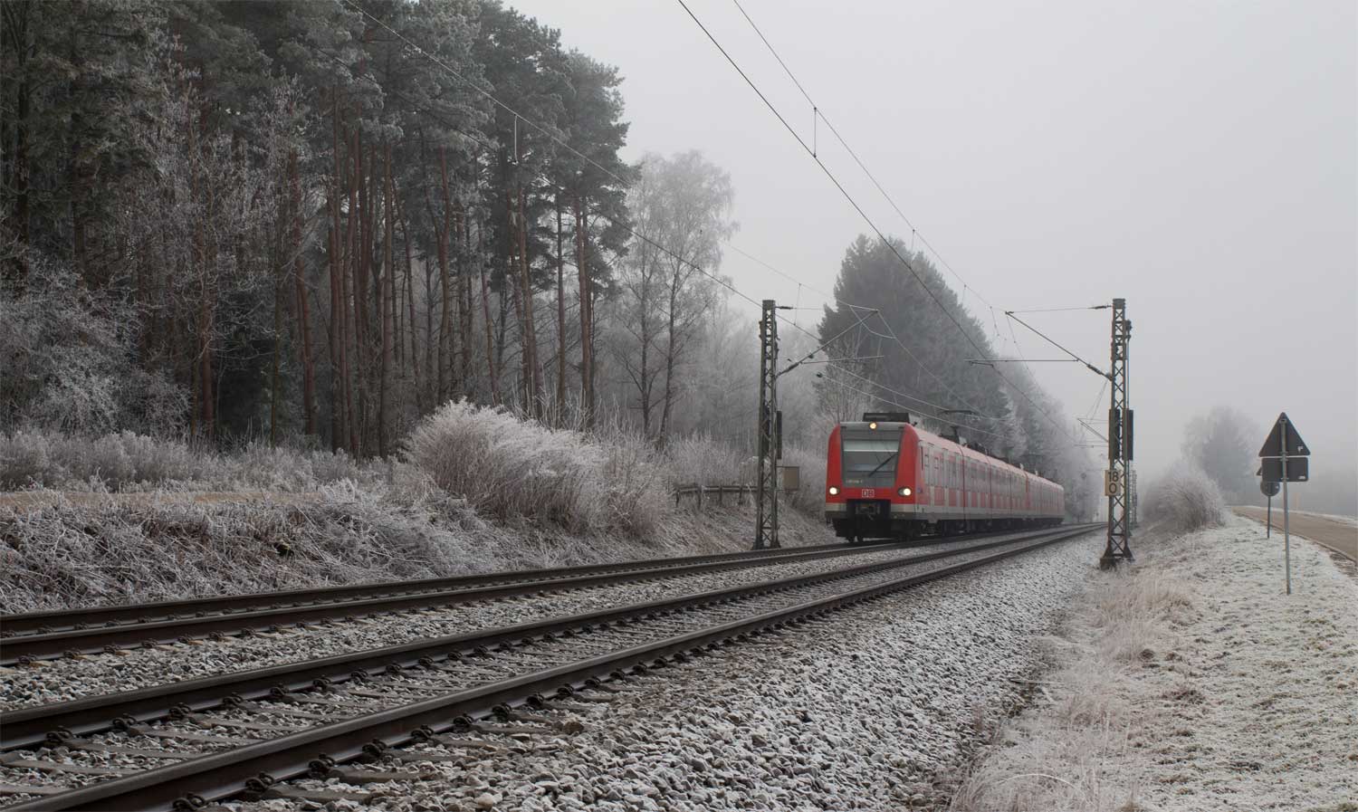 Im Vordergrund die Strecke Markt Schwaben 0,0 - Erding 13,63