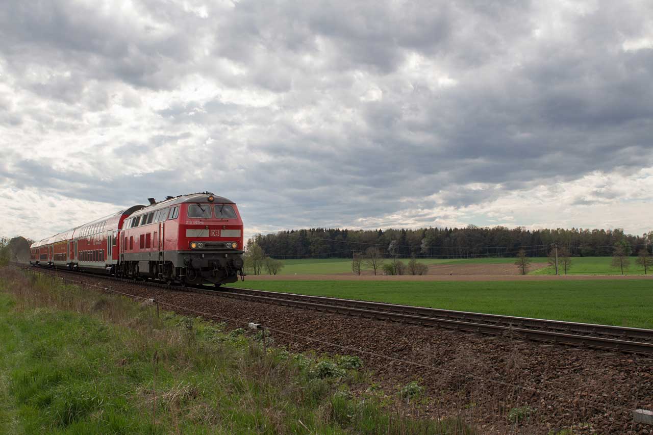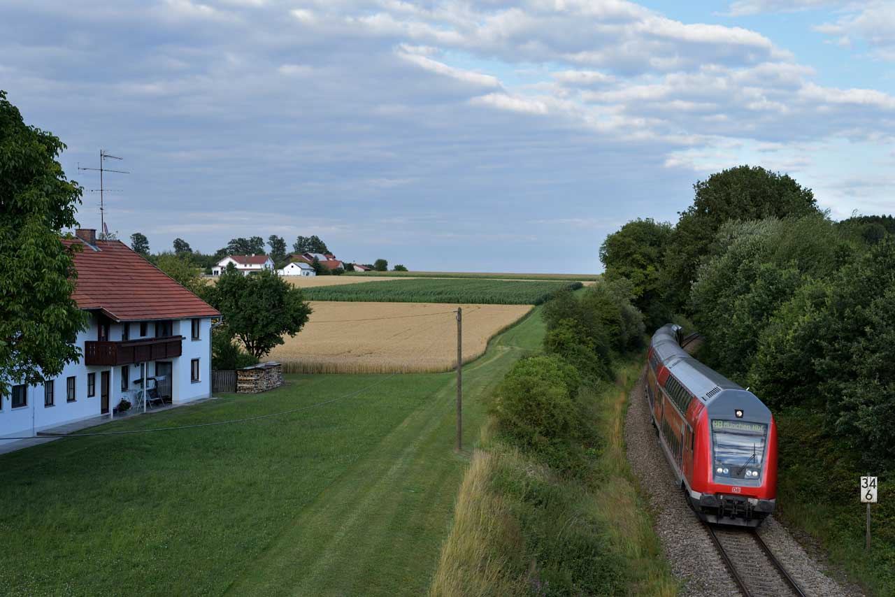km 34,6 zwischen Walpertskirchen und Thann-Matzbach - 245 014 schiebt Doppelstockzug