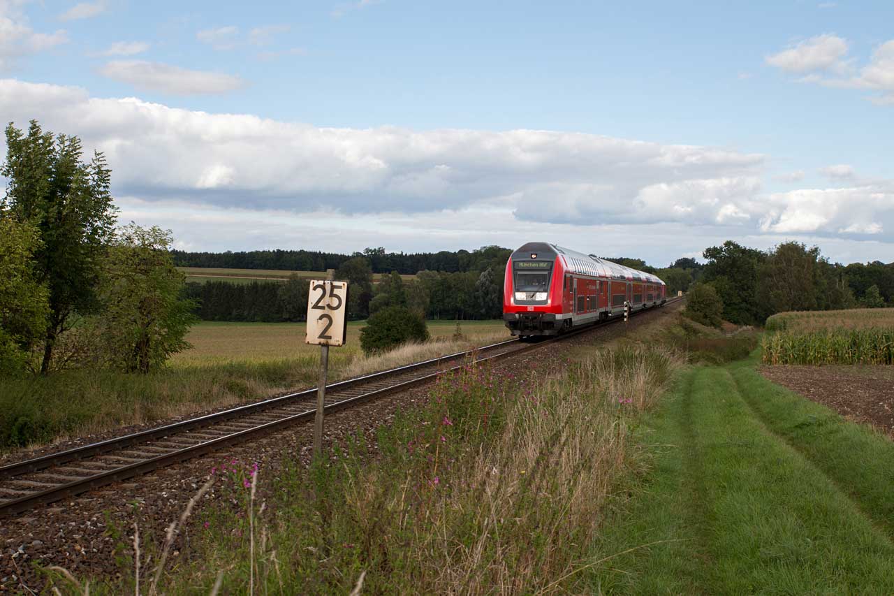 km 28,8 zwischen Markt Schwaben und Hörlkofen - Doppelstock-Steuerwagen mit 245 014