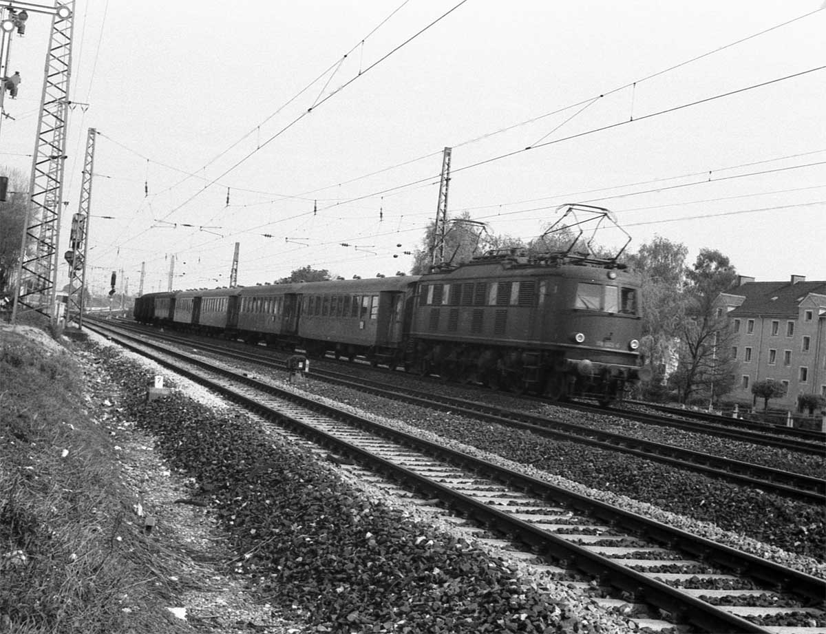 Die 118 mit ihrem Zug kommt aus Ri Rosenheim und hat bald München Hbf erreicht.