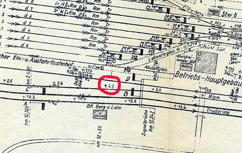 | München-Berg a Laim | 2,32 | km 12,14 der Strecke München Hbf 0,0 - Rosenheim 64,87 |