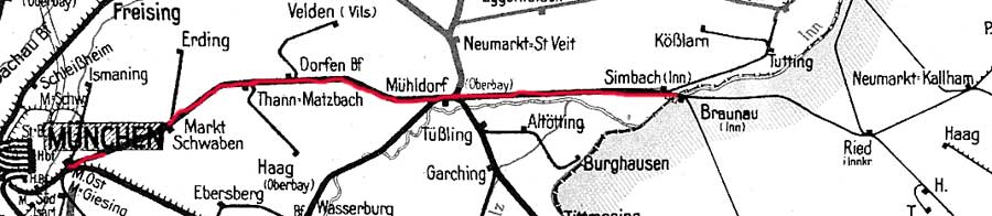 München Ost Pbf 0,0 - Mühldorf (Oberbay) 74,80 - Simbach (Inn) 113,81 - Staatsgrenze