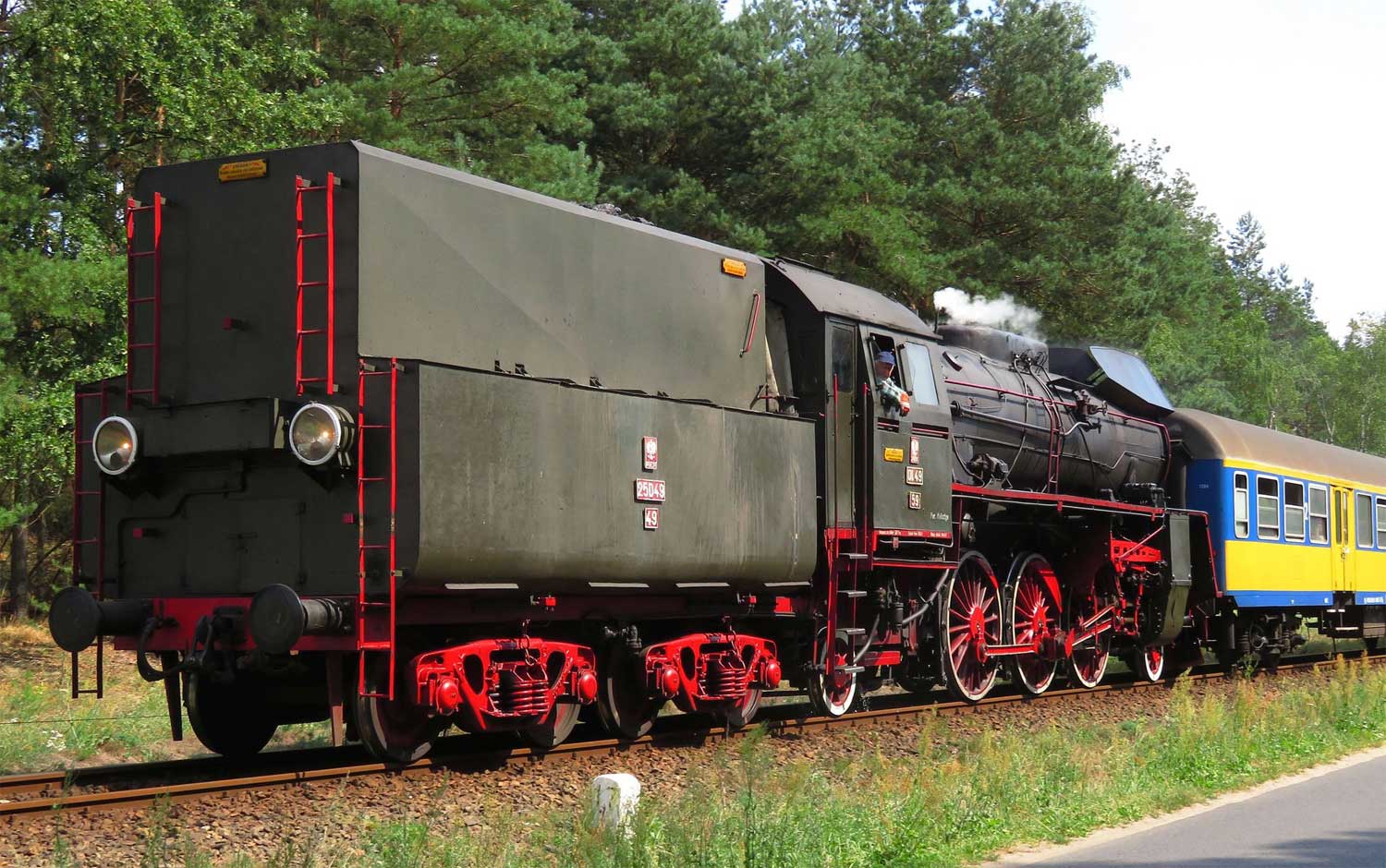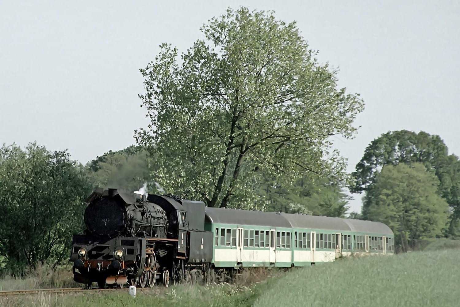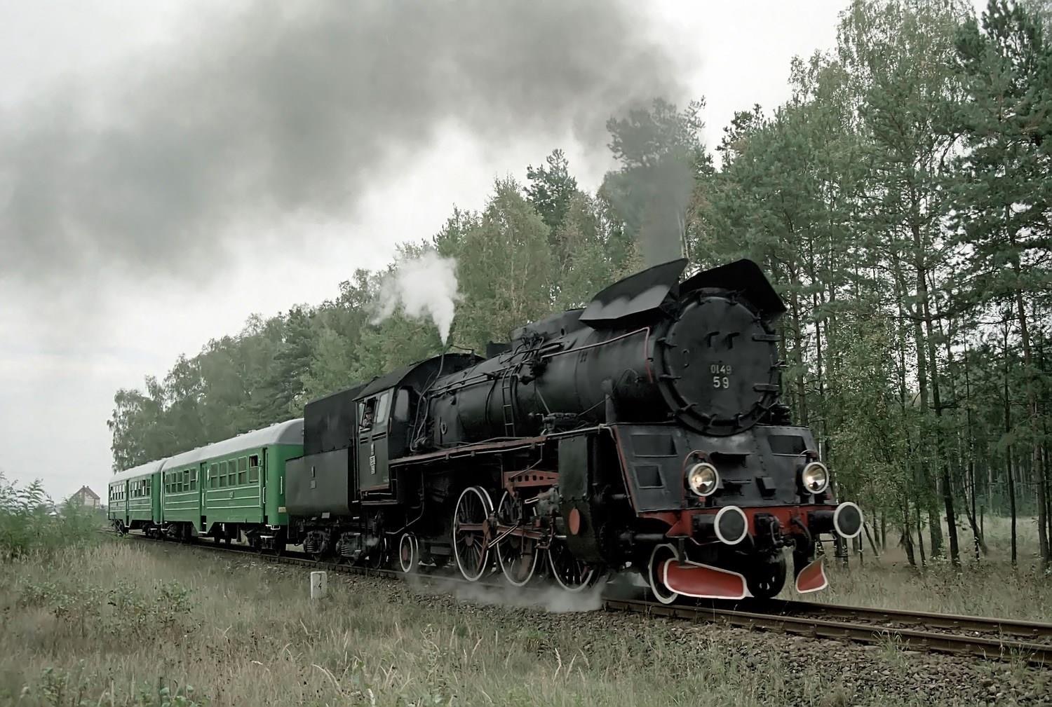 km 48,8 zwischen Wolsztyn [Wollstein (Pos)] und Tuchorza [Tannheim (Warthel)] - Ol49-69 auf Probefahrt
