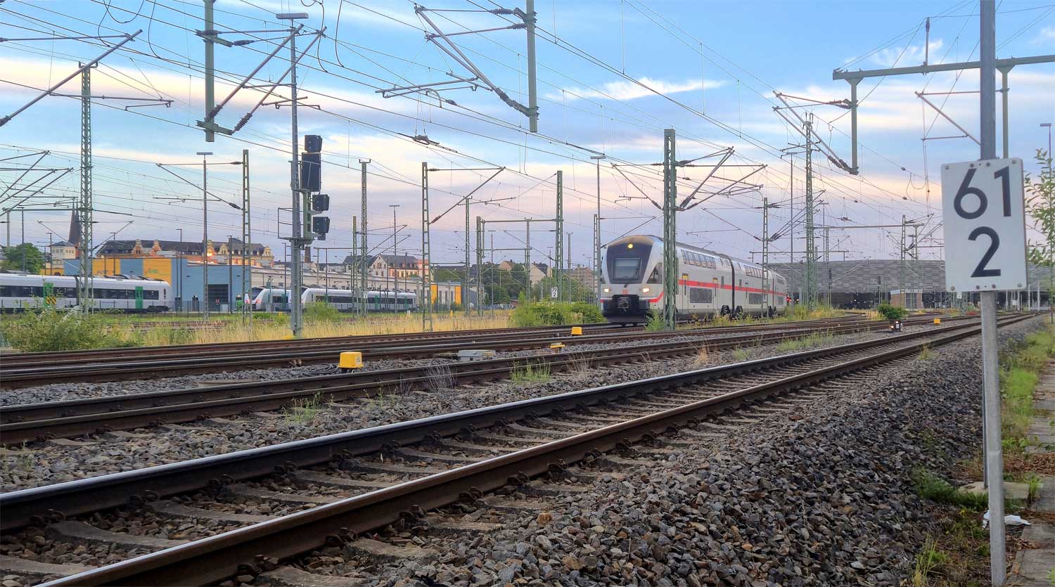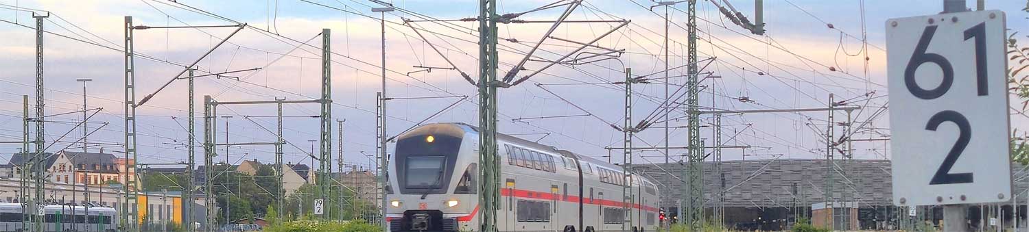 | Chemnitz Hbf | 61,80 | km 79,73 der Strecke Dresden Hbf -0,048 - Chemnitz Hbf 79,73 - Zwickau Hbf 128,35 - Abzw. Werdau Bogendreieck (Neumarker Spitze) 136,23 (DW) |