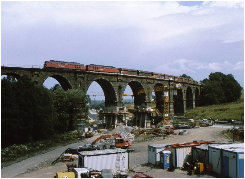 Bahrebachmühlenviadukt zwischen km 55,6 und km 55,8 während des Umbaus 2000 - 2002