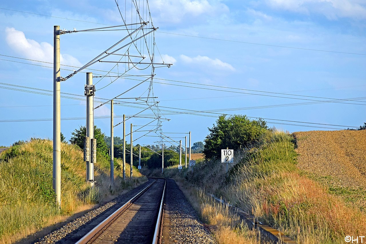 km 110,2 zwischen Kavelstorf und Abzw Dalwitzhof - Blick Richtung Warnemünde