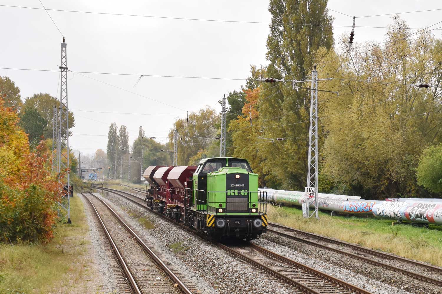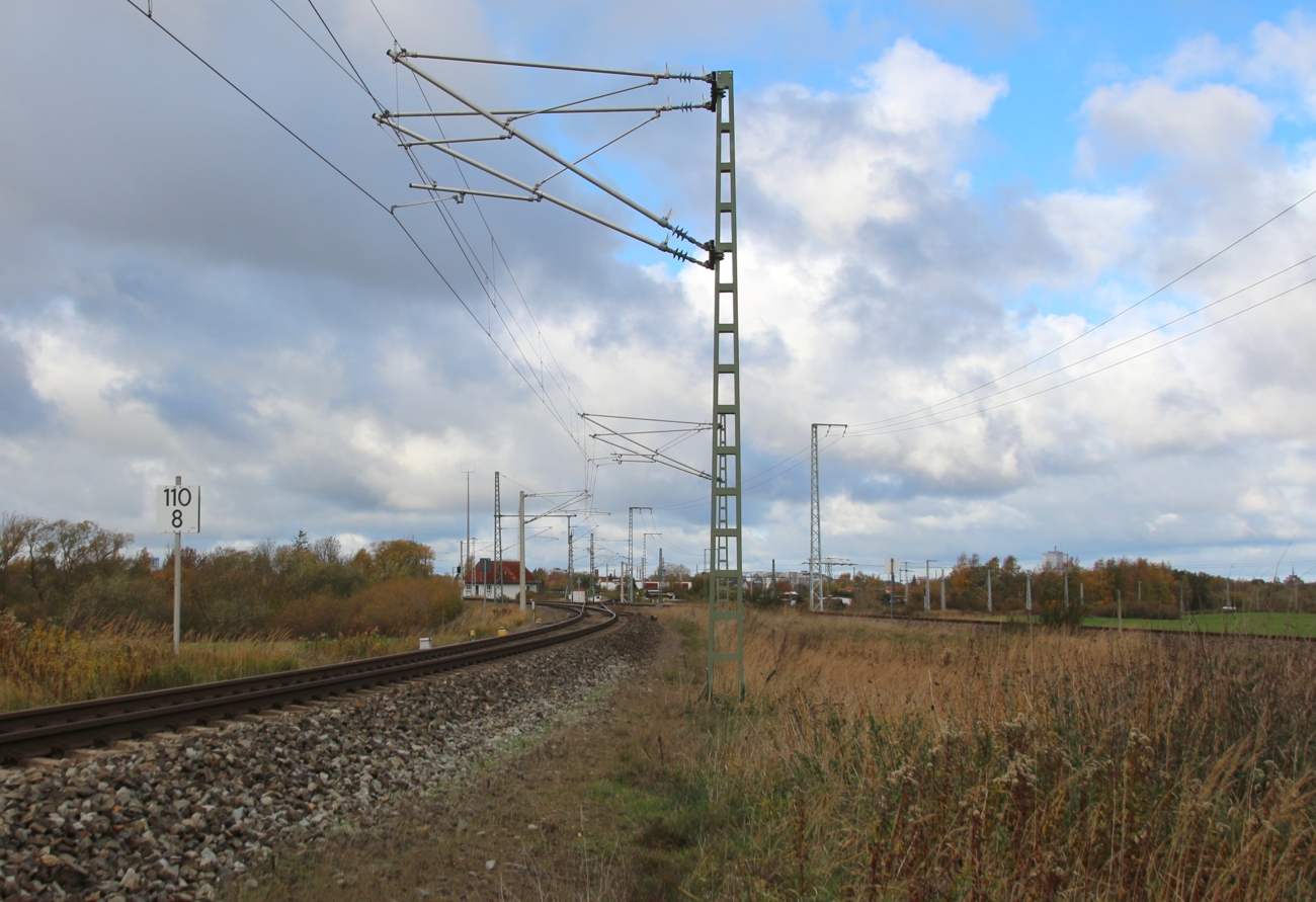 km 117,0 in Rostock-Bramow - Blick Richtung Warnemünde