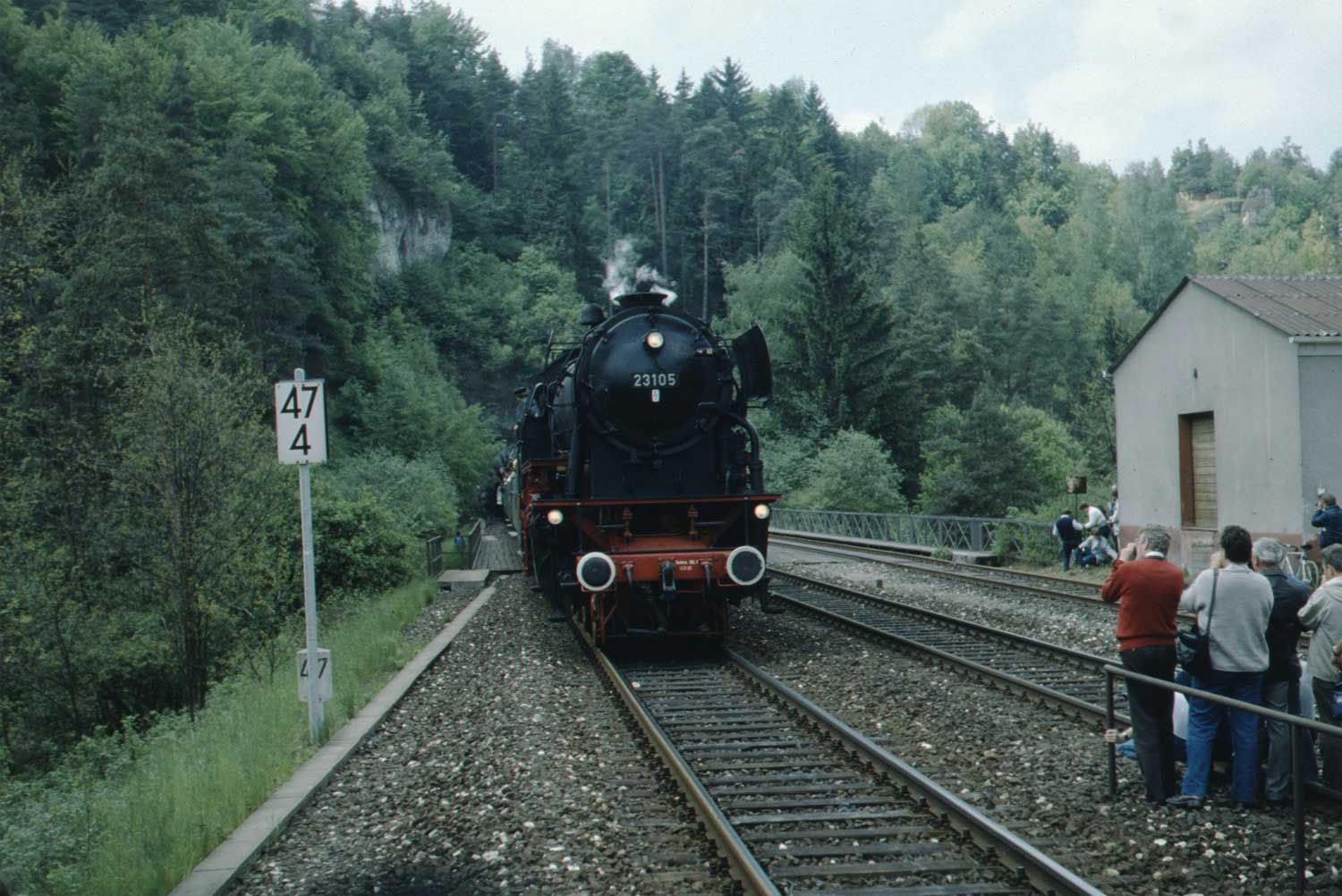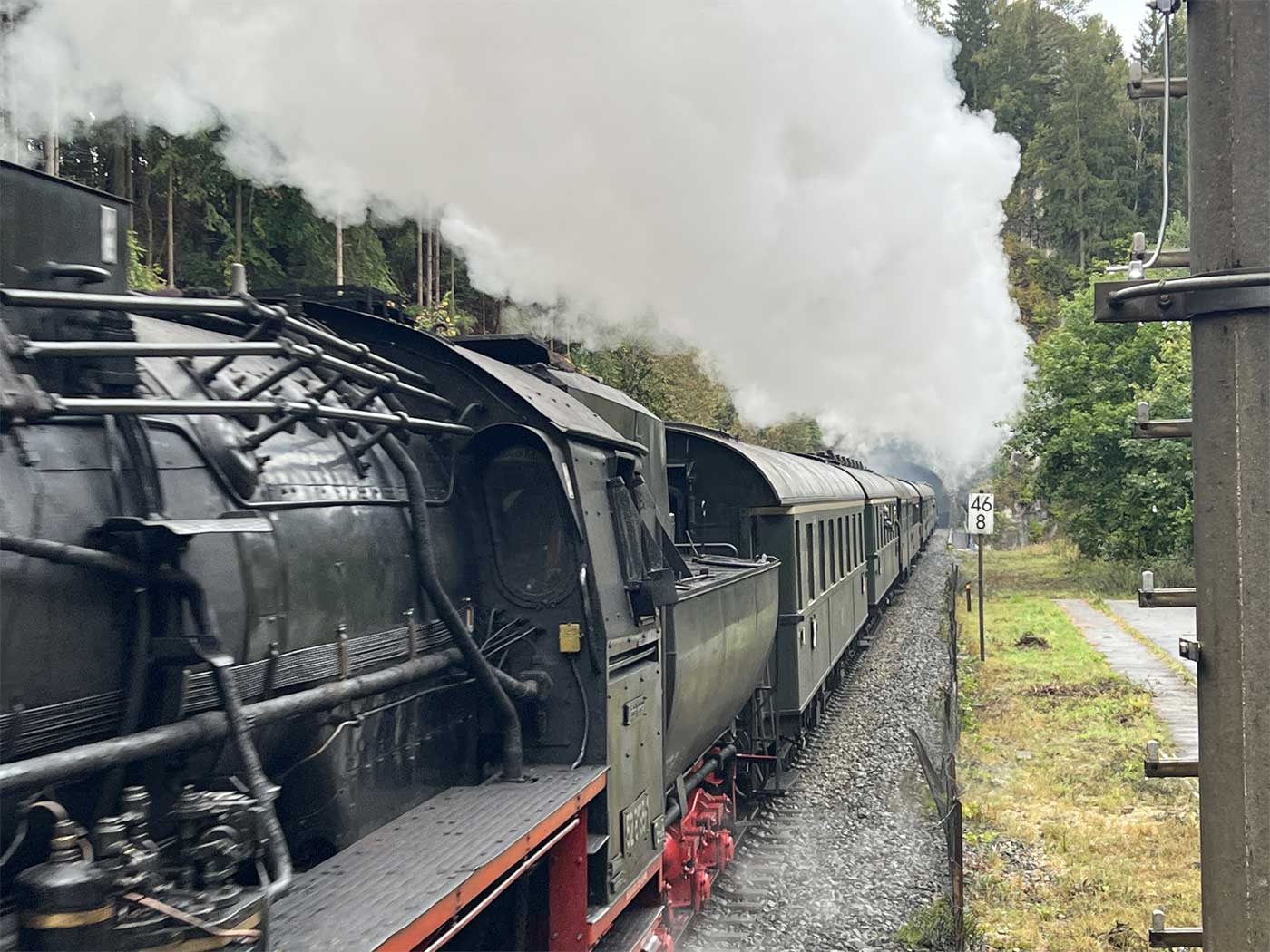 wurde wegen der erforderlichen Dampfheizung ab/bis Schirnding von tschechischen Dampfern befördert.