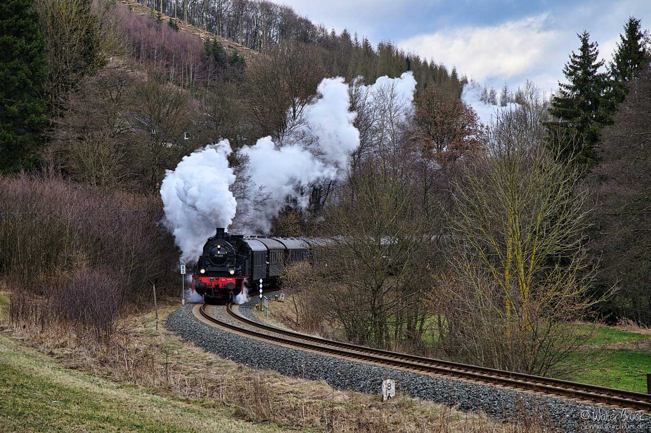 km 7,0 bei Steinhelle - 41 360 mit einem Sonderzug nach Winterberg (Westf)