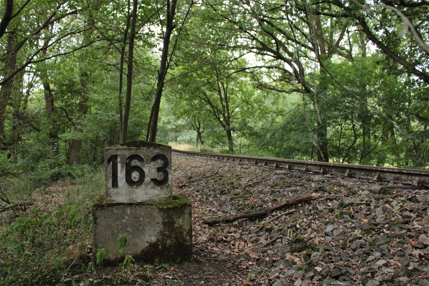 Der Kilometerstein wurde vom Bahnhofseigentümer aufgestellt.