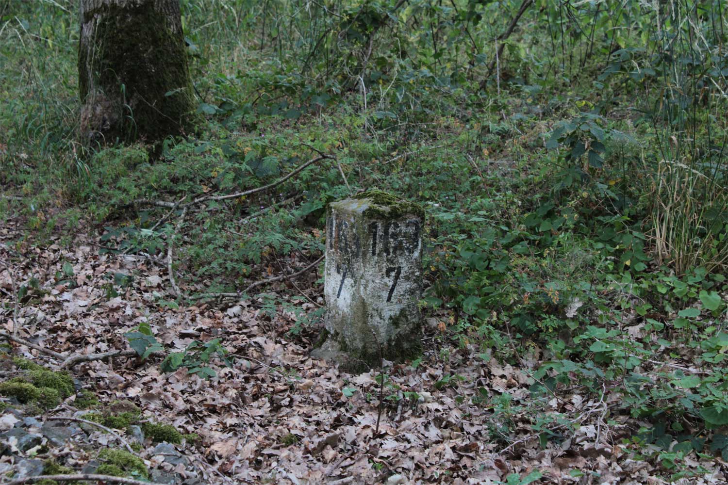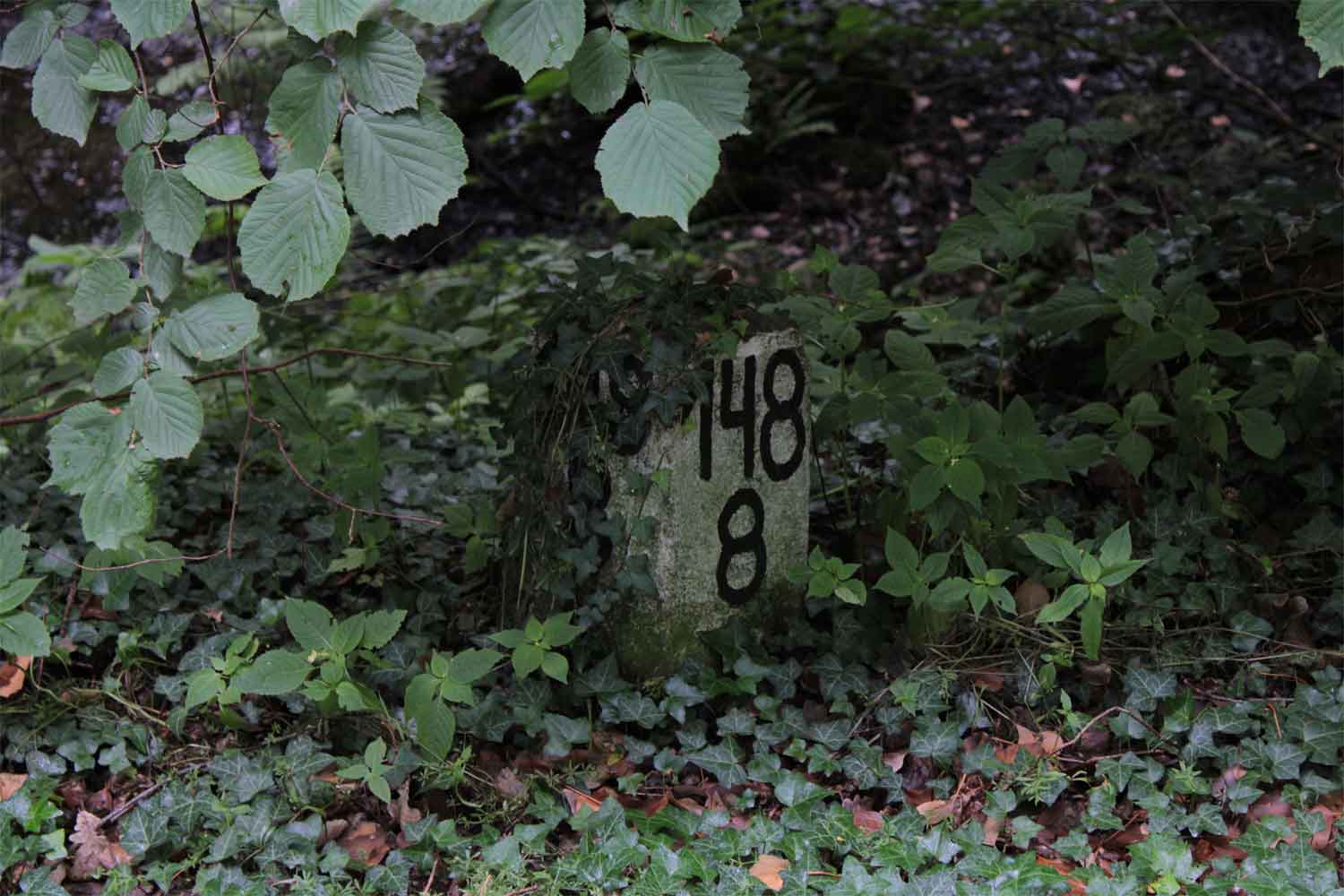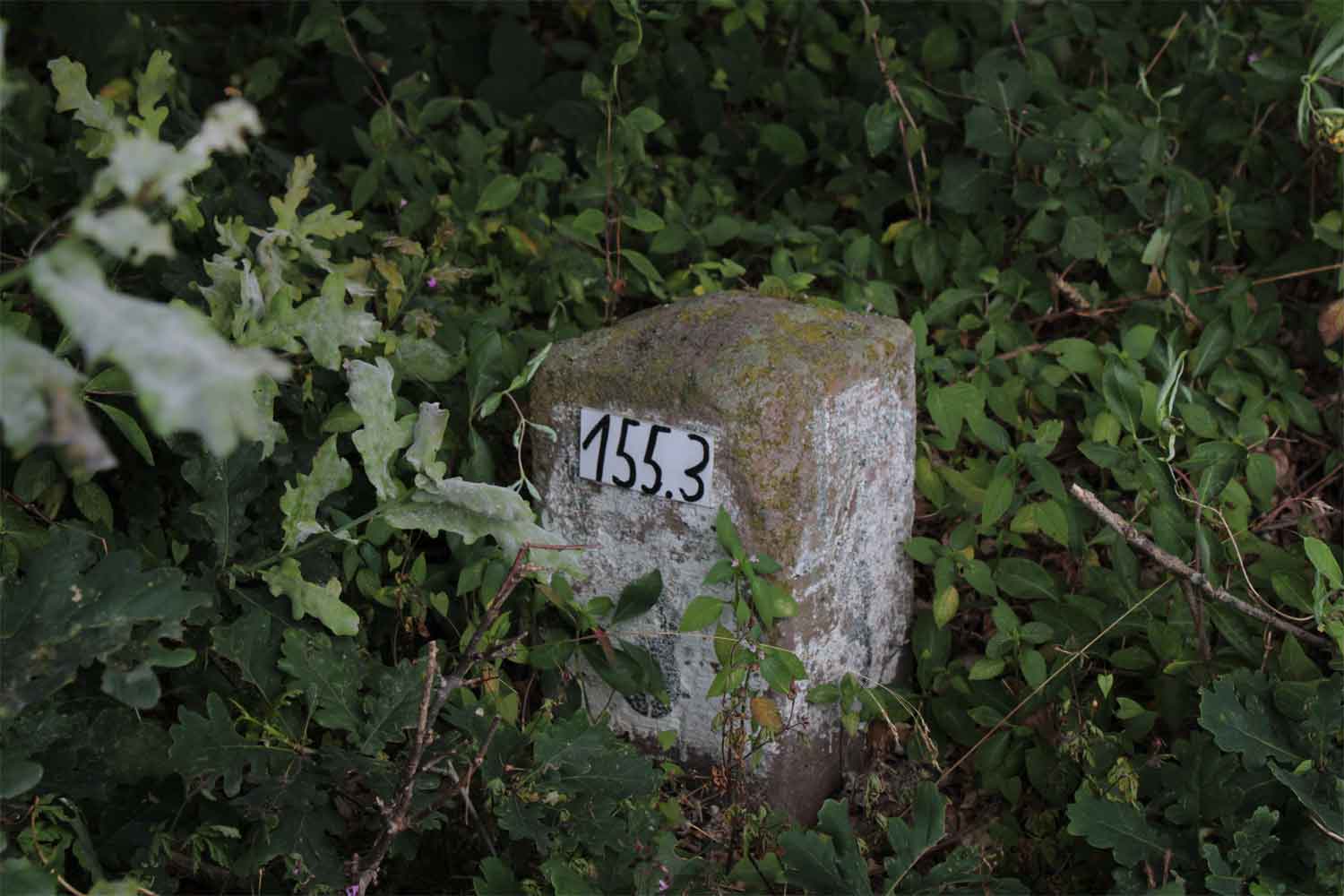 km 83,0 - liebevoll restaurierte Kilometersteine am Rande des Radweges