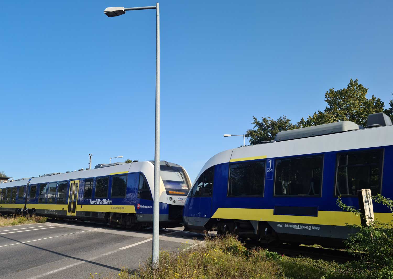 Die Aufnahme entstand kurz vor dem Schrankenposten 107, rechts die DB-Strecke von/nach Bramsche.