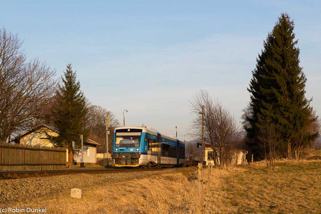 Frýdlant v Čechách (Friedland in Böhmen) 0,0 - Dětřichov u Frýdlantu [Dittersbach (b Friedland)] 6,811 - Heřmanice u Frýdlantu [Hermsdorf (b Friedland)] 10,467 - Grenze Tschechien/Polen 16,617