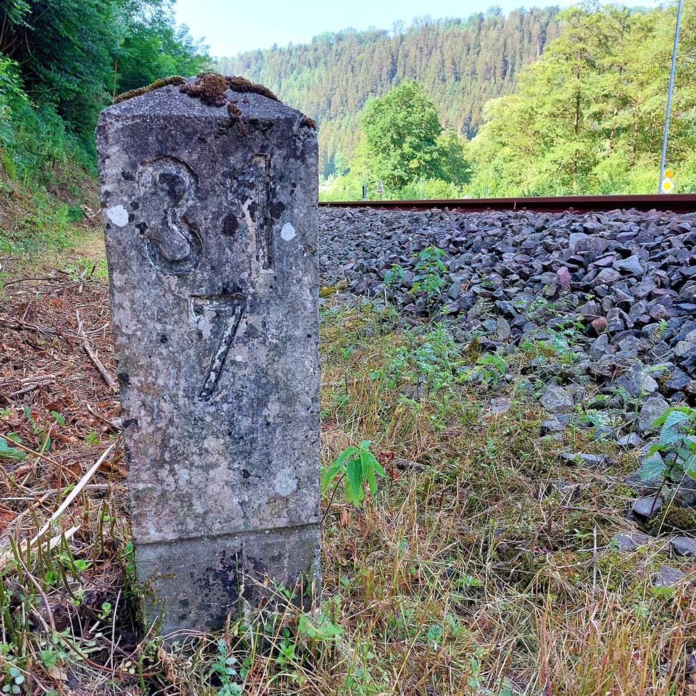 km 6,2 (Stein und Tafel) zwischen Pforzheim-Weißenstein und Unterreichenbach