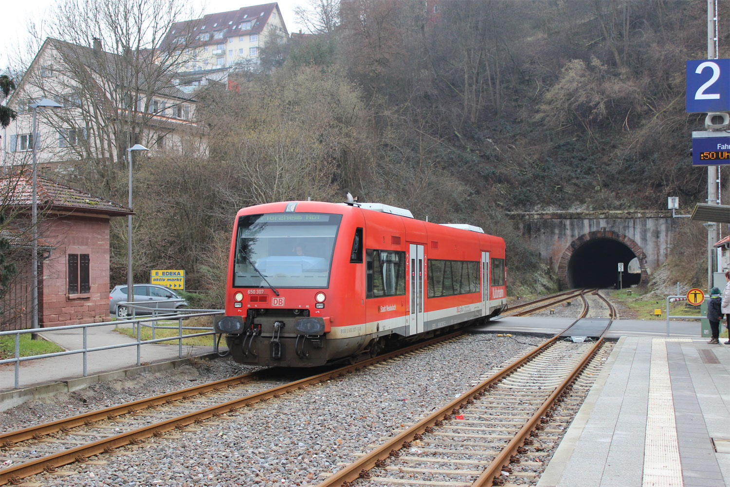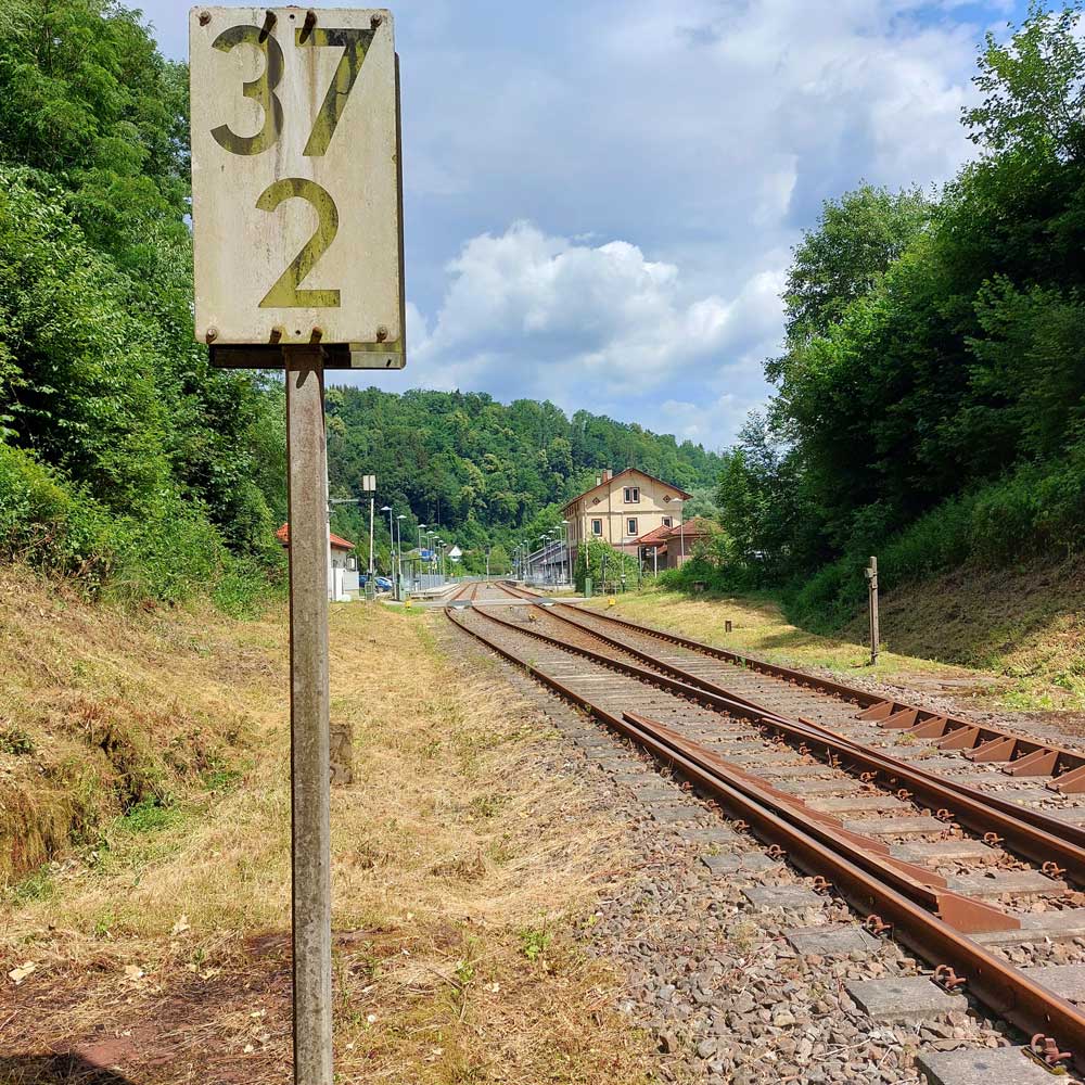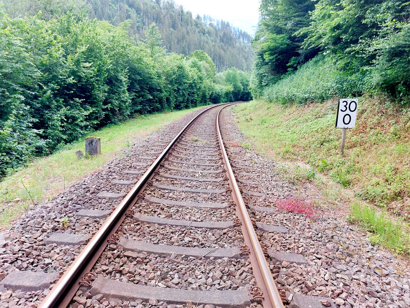 Rechts die Strecke Eutingen (Württ) 0,0 - Freudenstadt Hbf 29,91 - Schiltach 54,78