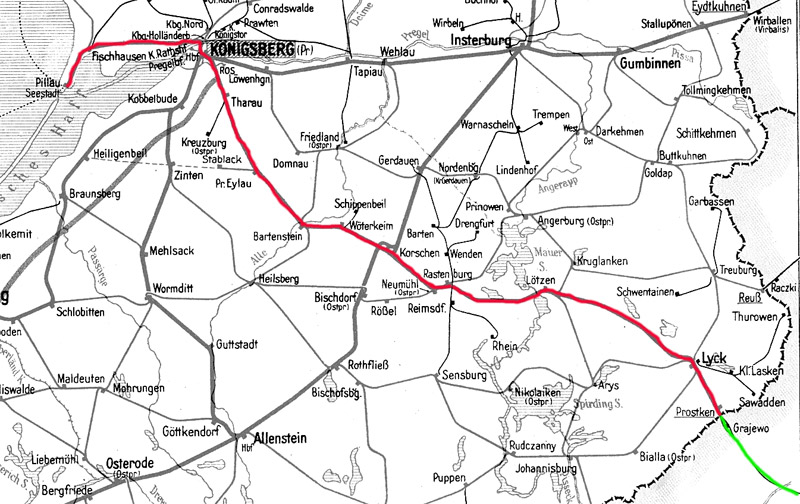 | Pillau - Königsberg (Pr) Hbf - Korschen - Lyck - Prostken - Reichsgrenze |