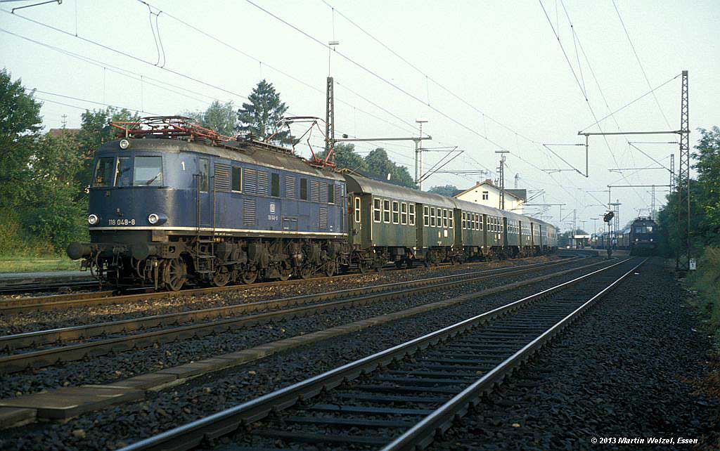 Mit einer schönen Umbauwagengarnitur machte sich pünktlich um 6:46 Uhr 118 048 mit N5423 Nürnberg-Regensburg in Richtung Zielbahnhof auf – rechts im Hintergrund erkennt man noch 118 006 mit N5421.