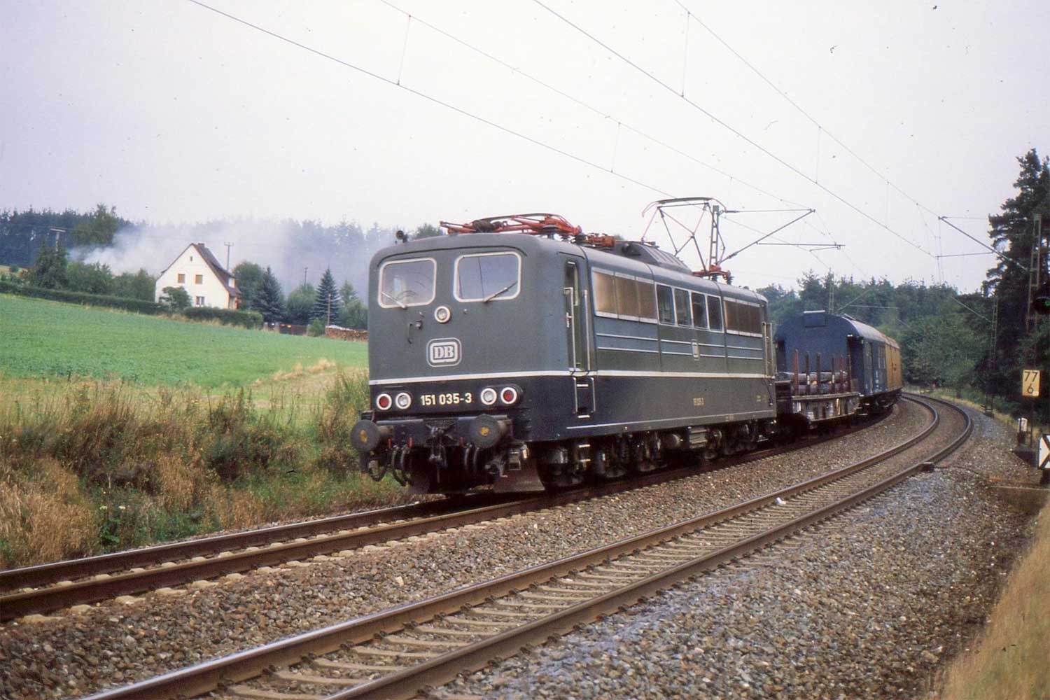 km 34,0 vor Parsberg - 151 153 mit einem gemischten Güterzug