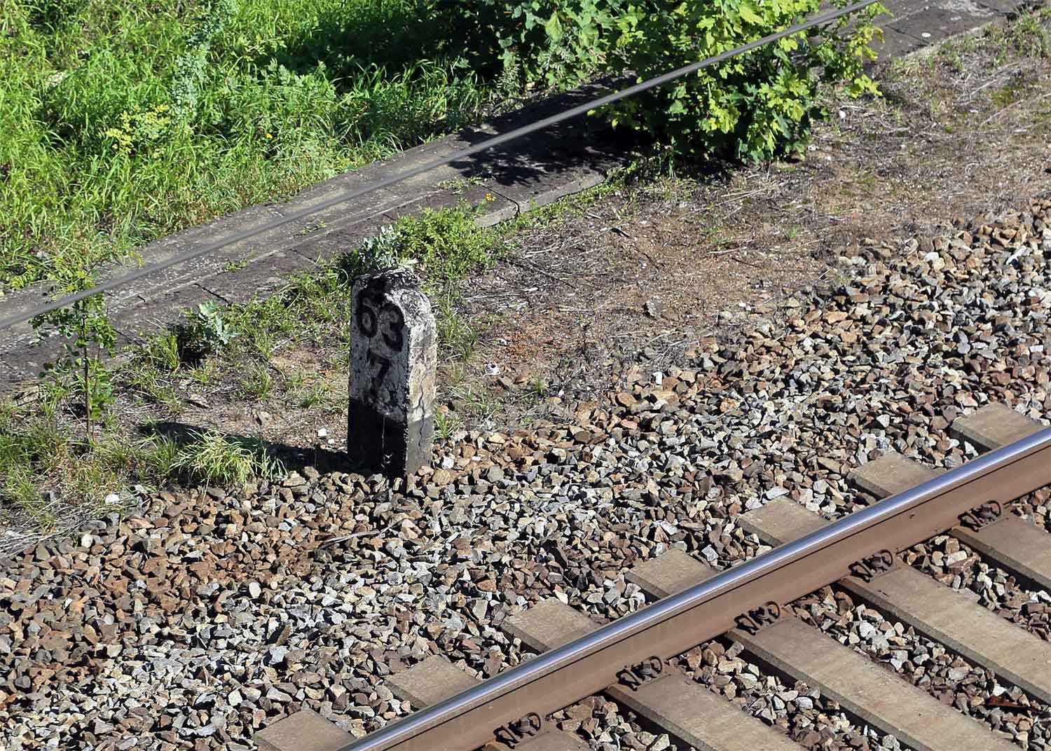 | km 0,0 der Strecke Nürnberg Hbf 0,0 - Schnabelwaid 74,96 - Marktredwitz 124,20 - Schirnding 138,30 - Grenze 140,584 - Eger 151,467 |