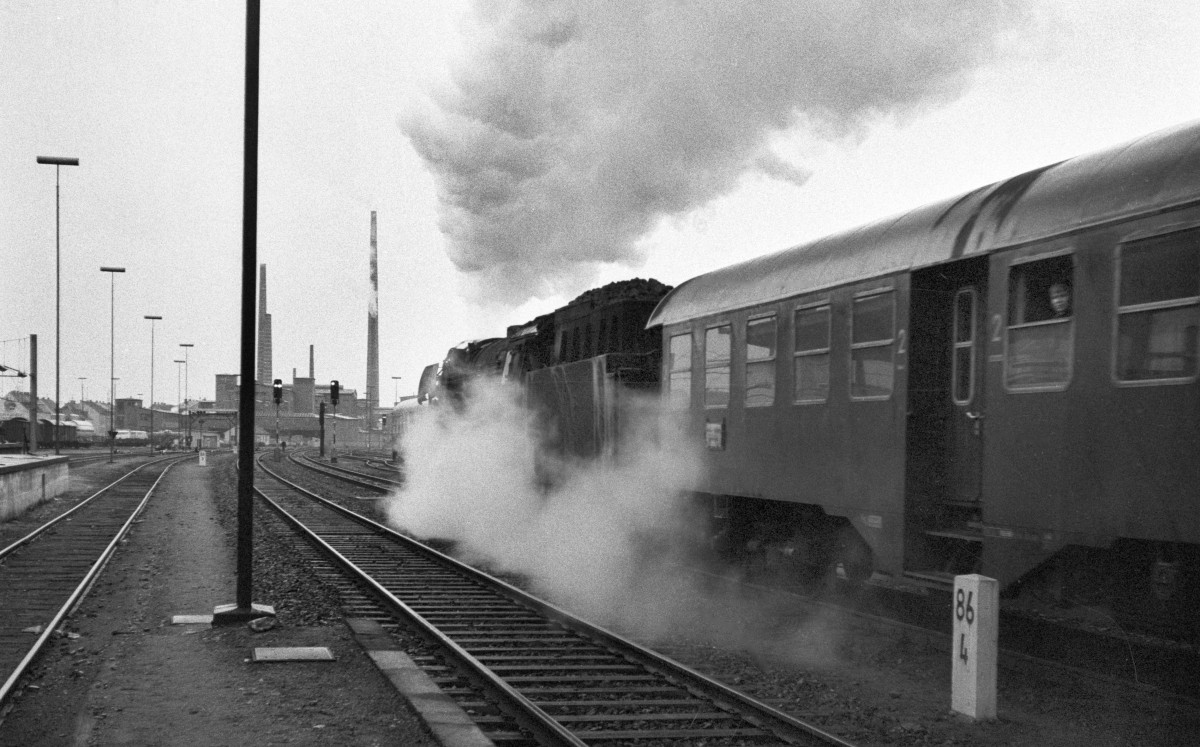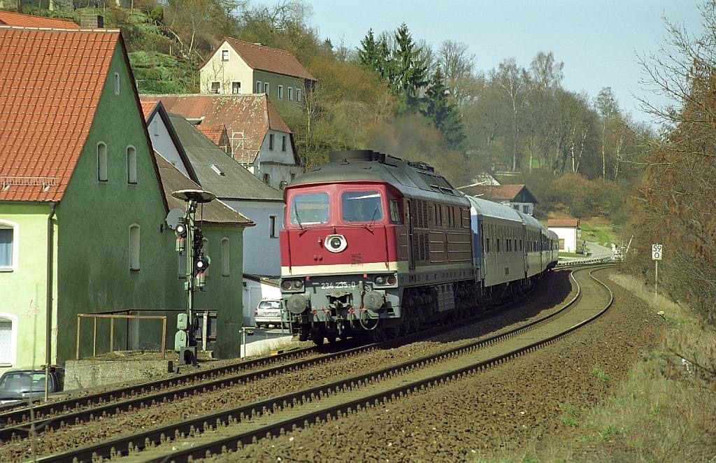 217 021 hatte ''In Bayern ganz oben'' den D 466 (Görlitz- München) von einer Reichsbahnschwester übernommen und