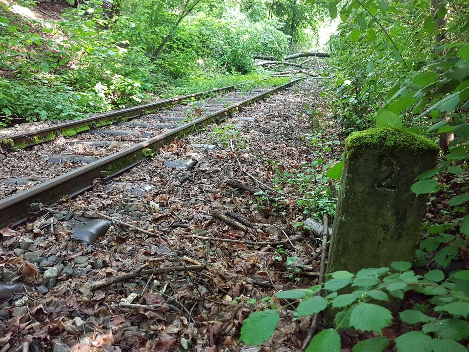 km 34,4 (links neben dem Zug) gehört zur Strecke