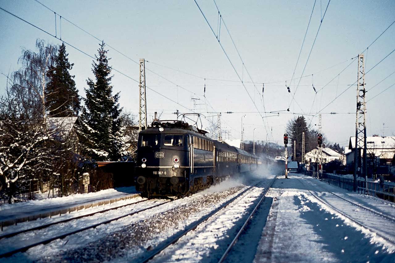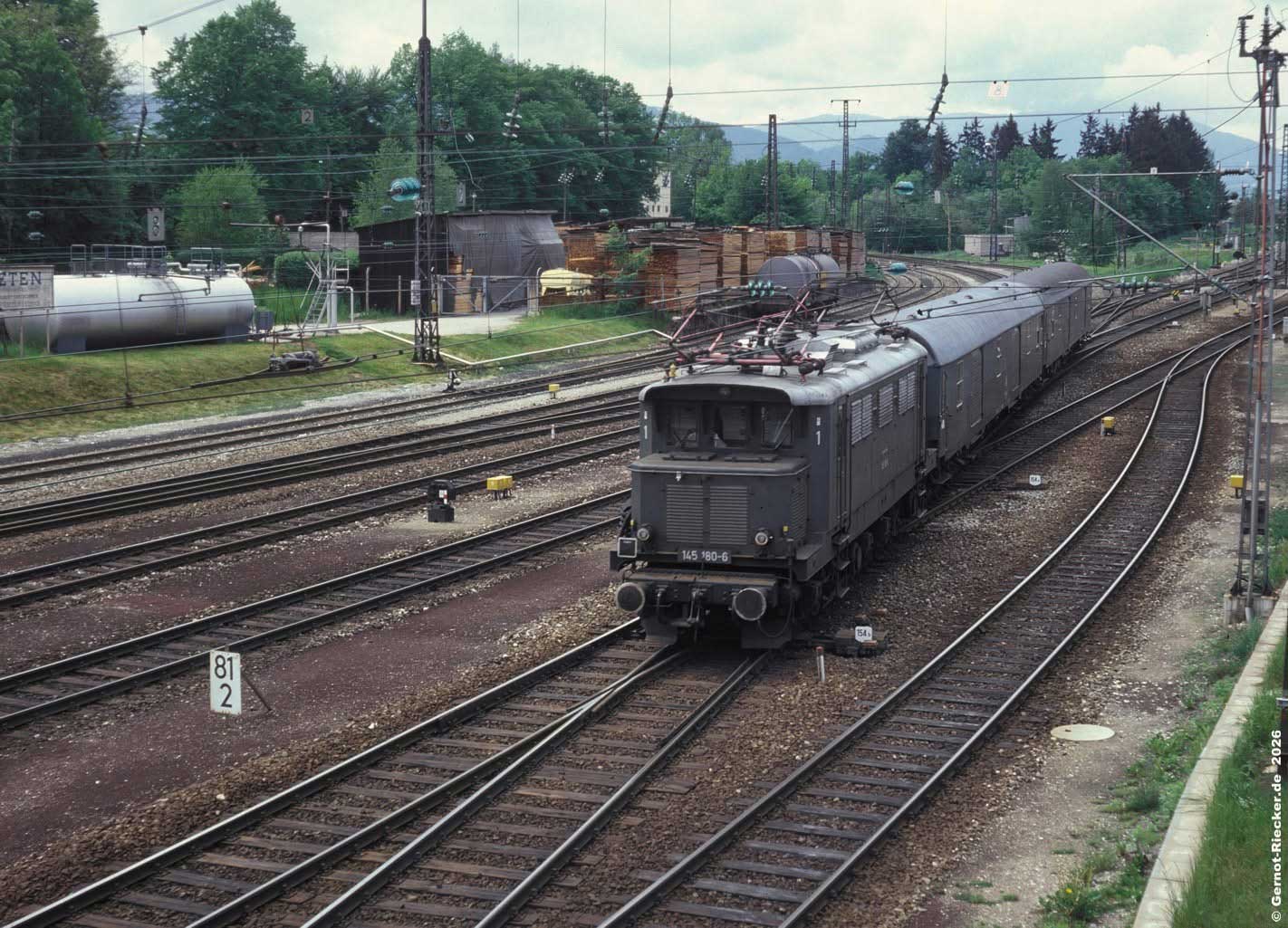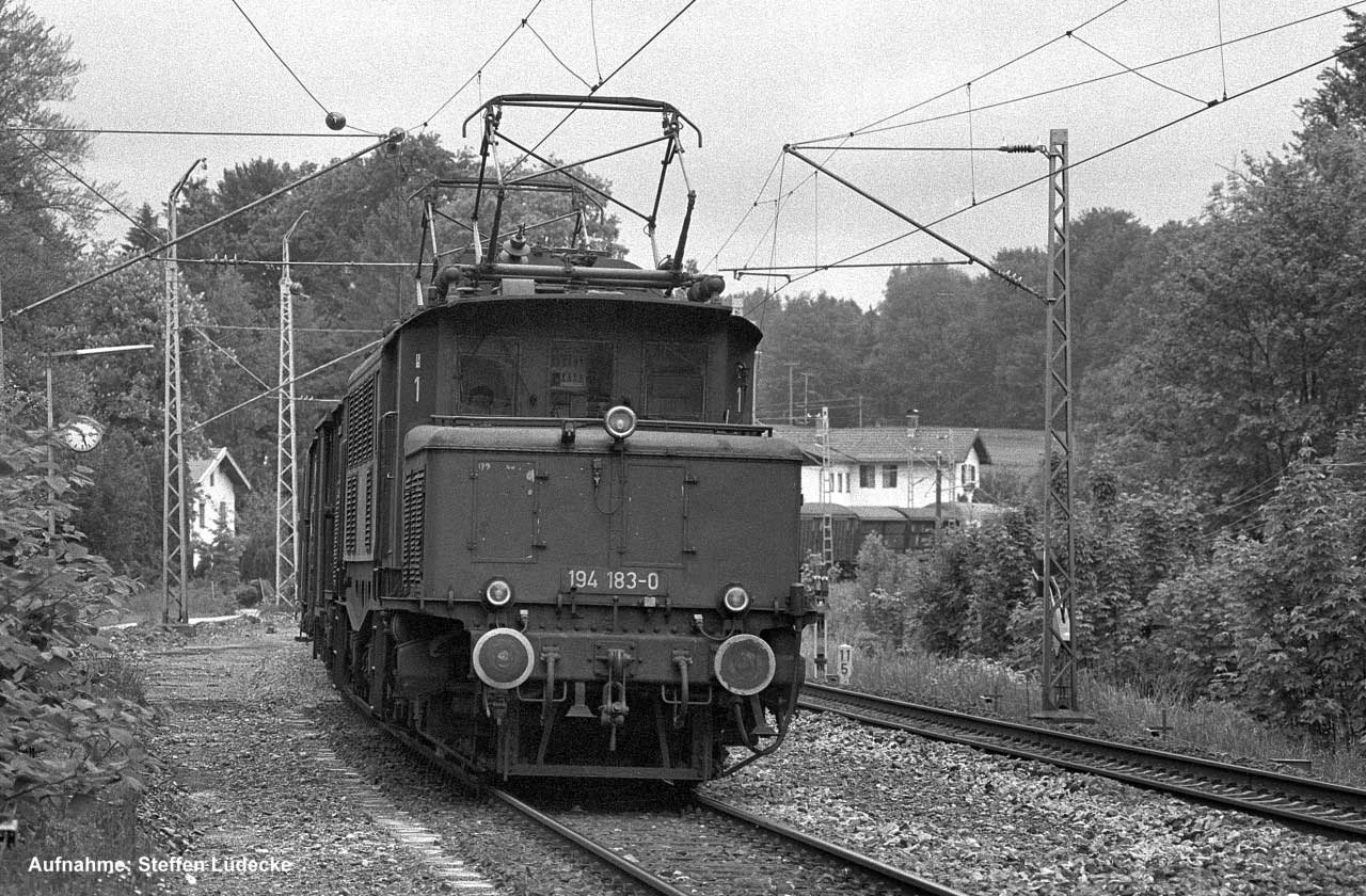 km 80,9 in Freilassing - 194 041 vom Bw Freilassing fährt an ihrem Zuhause vorbei (um 1980)