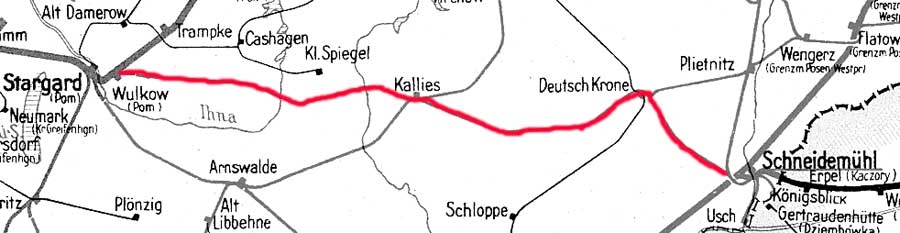Schneidemühl Abzw Snt 0,0 - Deutsch Krone 23,32 - Kallies 67,70 - Wulkow (Pom) 124,96