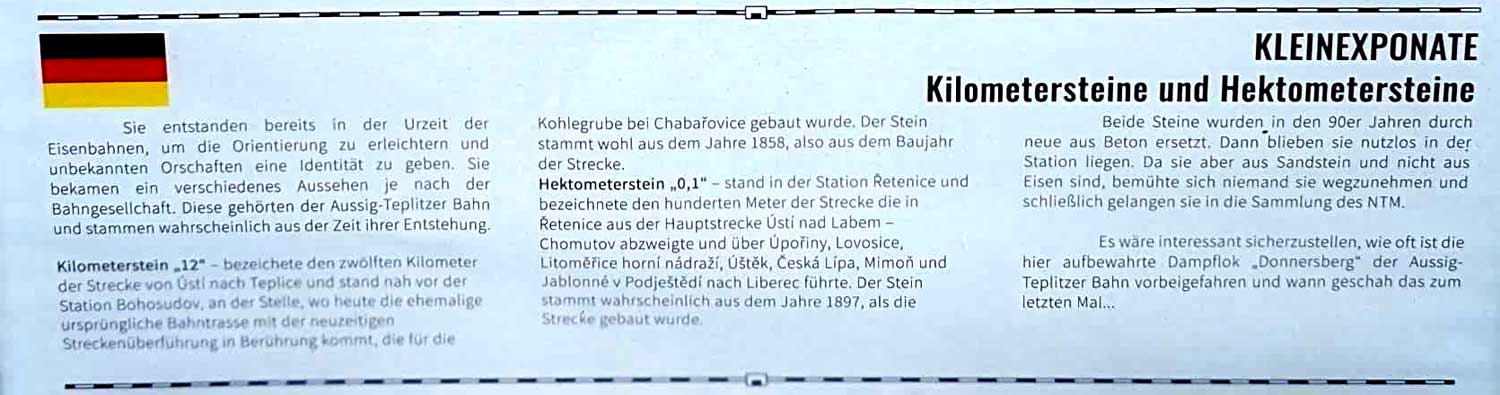 Der Stein befindet sich heute im Ringlokschuppen in Chomutov (Komotau)
