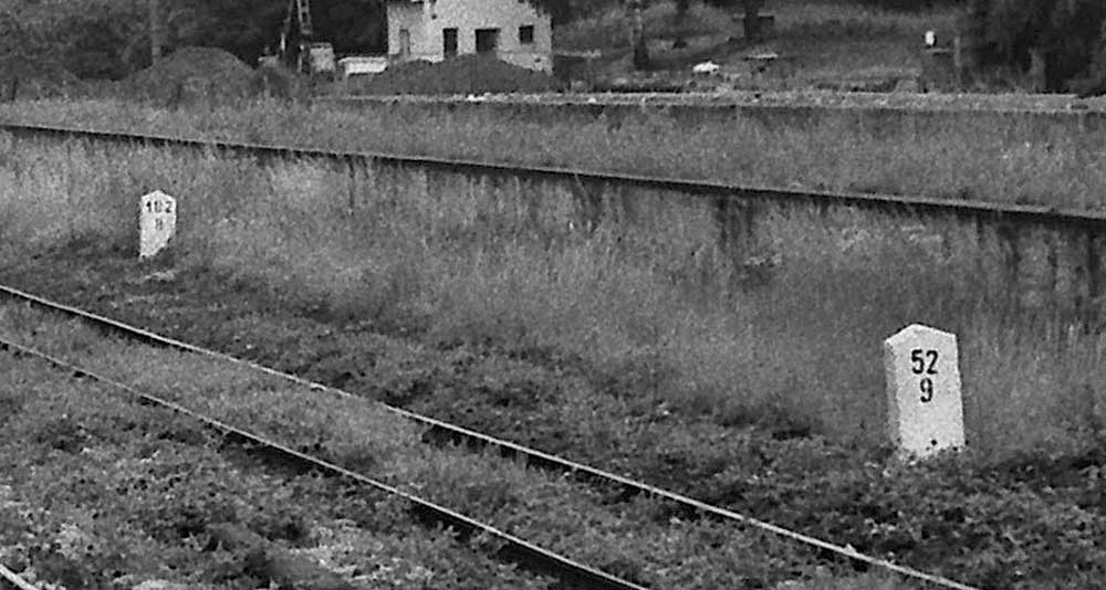 Neben dem Zug noch zu erahnen: km 102,5 der Strecke