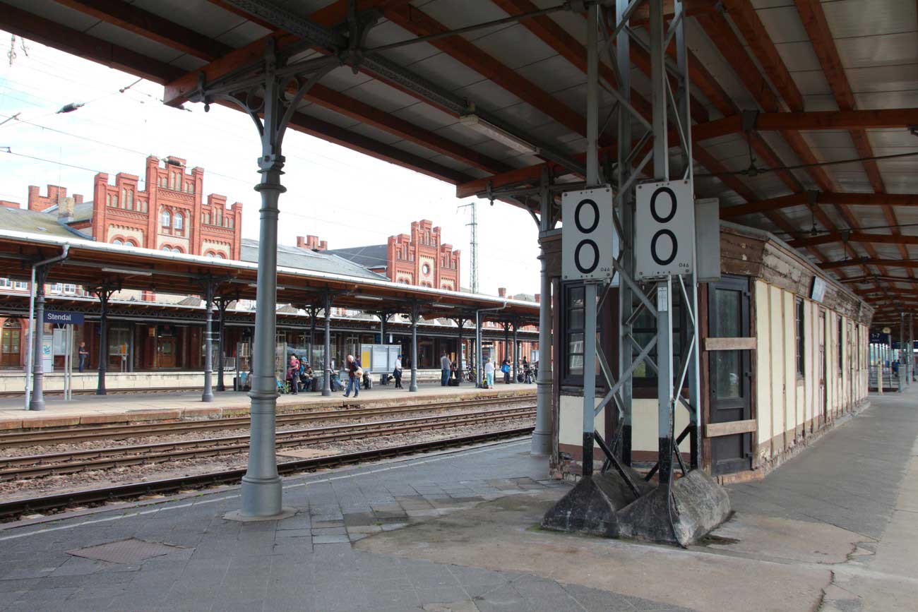 | Stendal | 0,0 | km 105,11 der Strecke Berlin Lehrter Bf 0,0 - Stendal 105,11 - Oebisfelde 167,34 - Staatsgrenze DDR/BRD km 168,93 - Lehrte 239,39 |