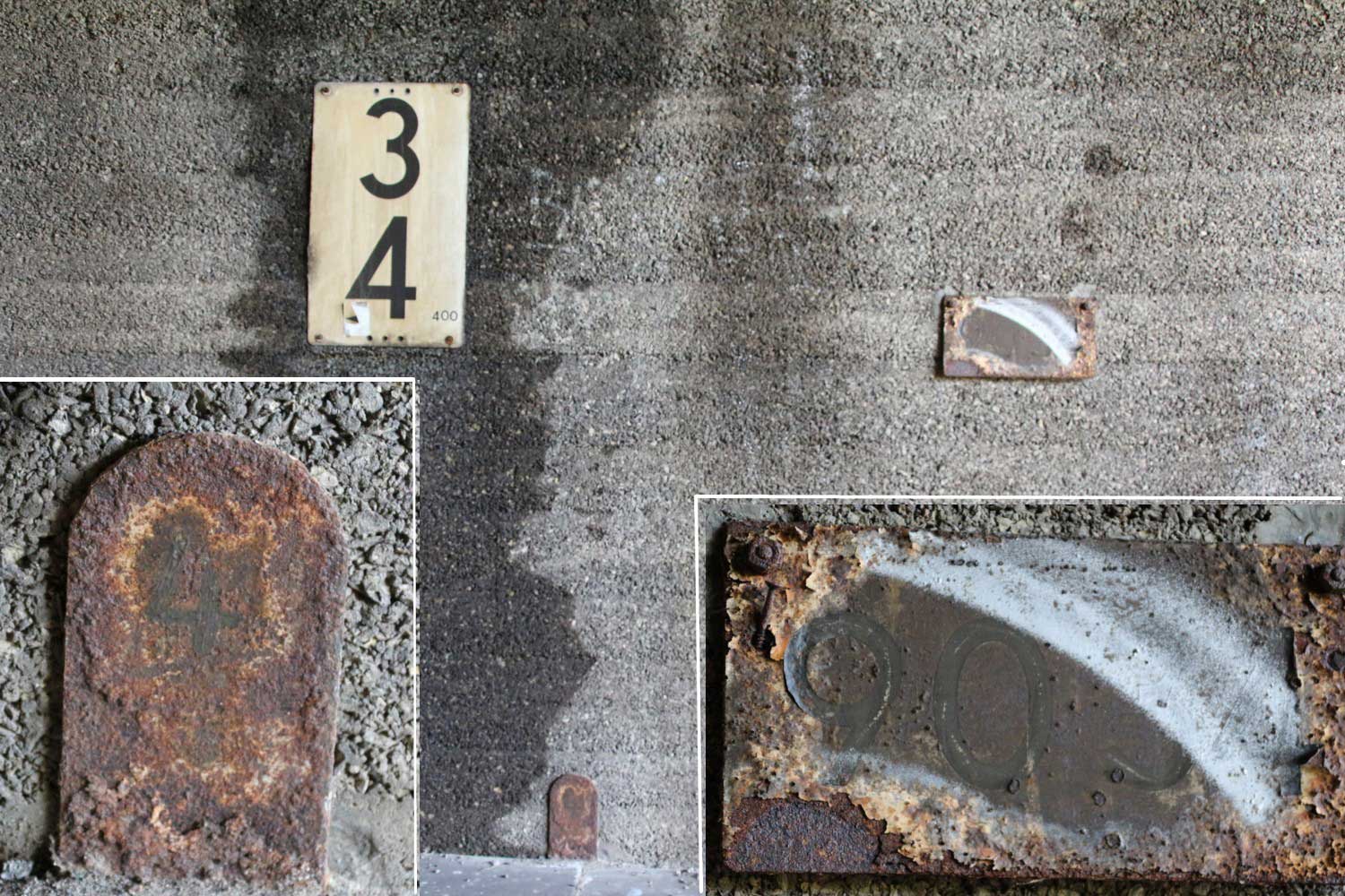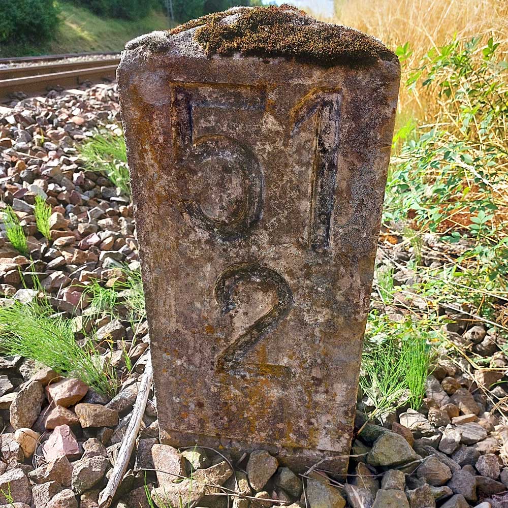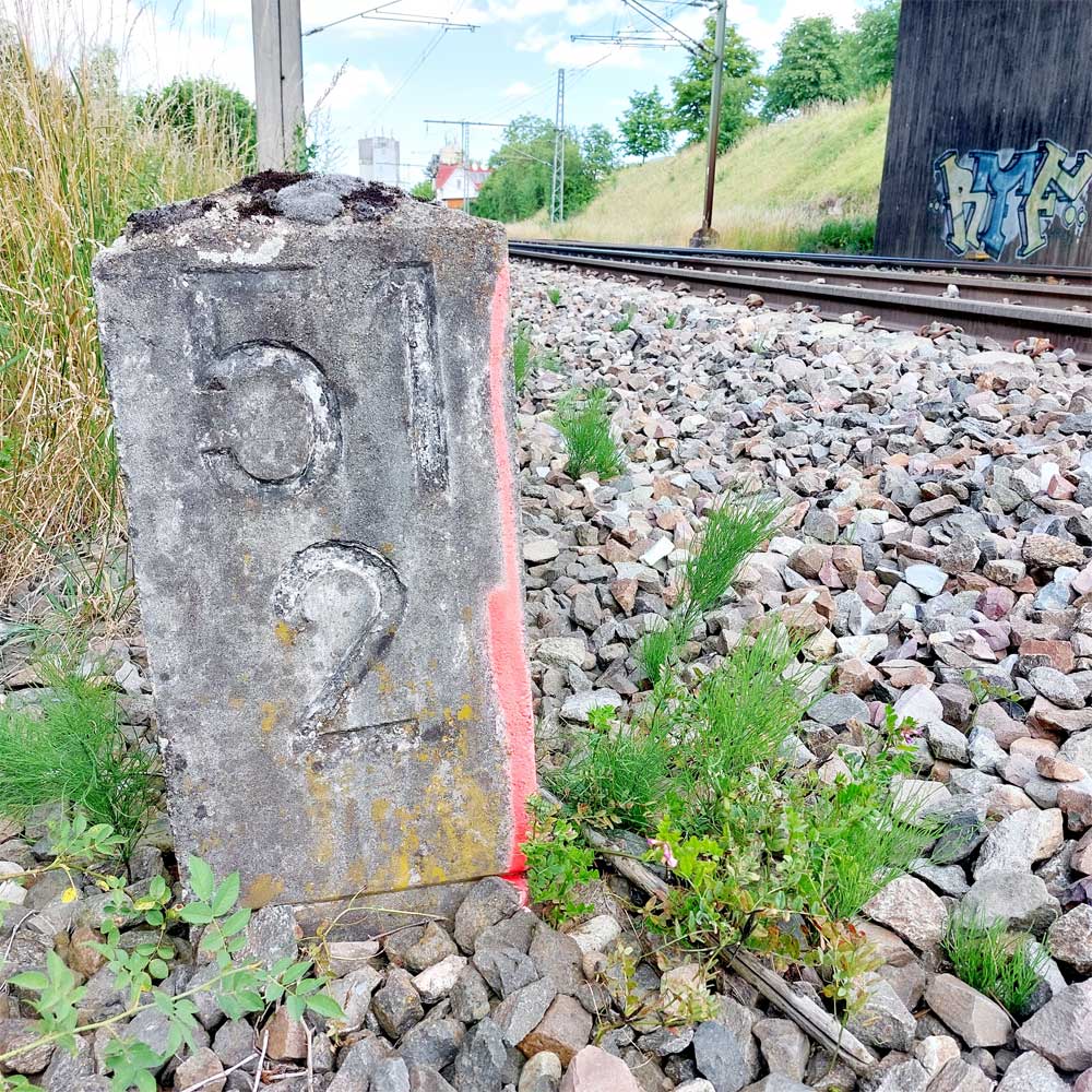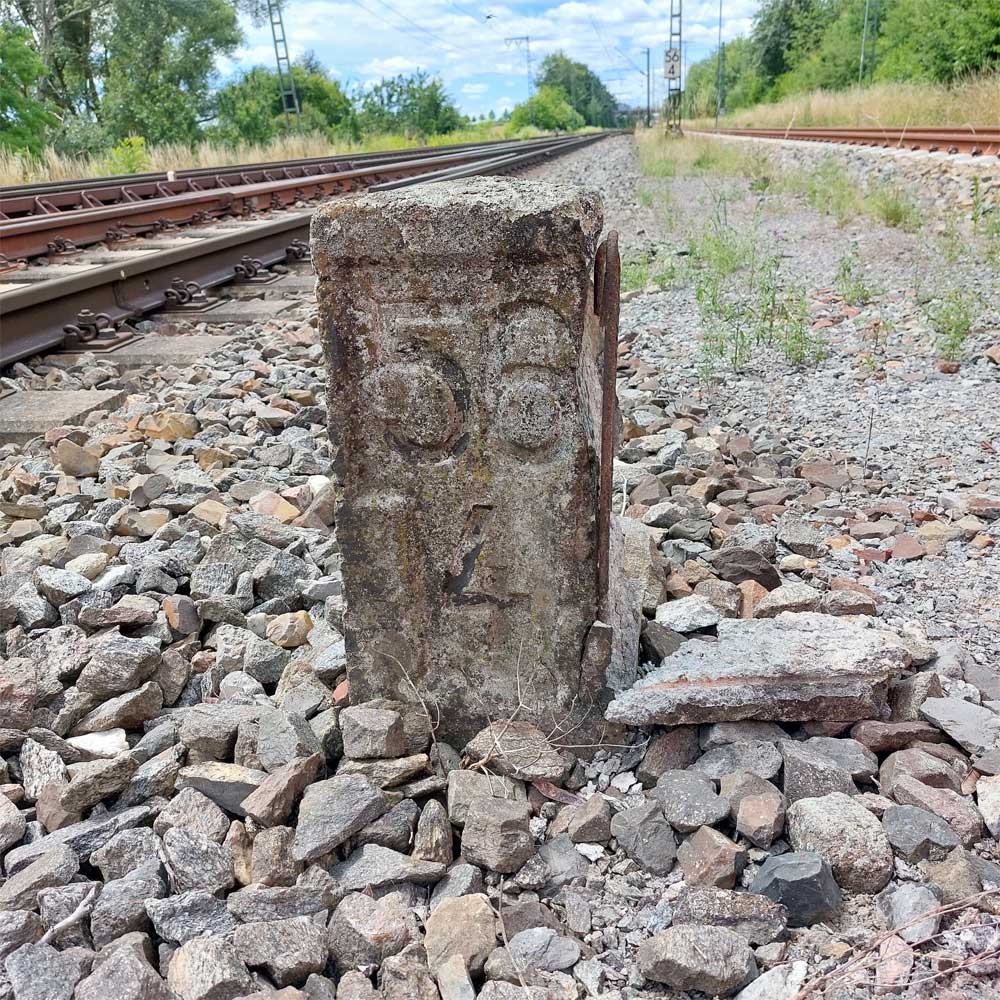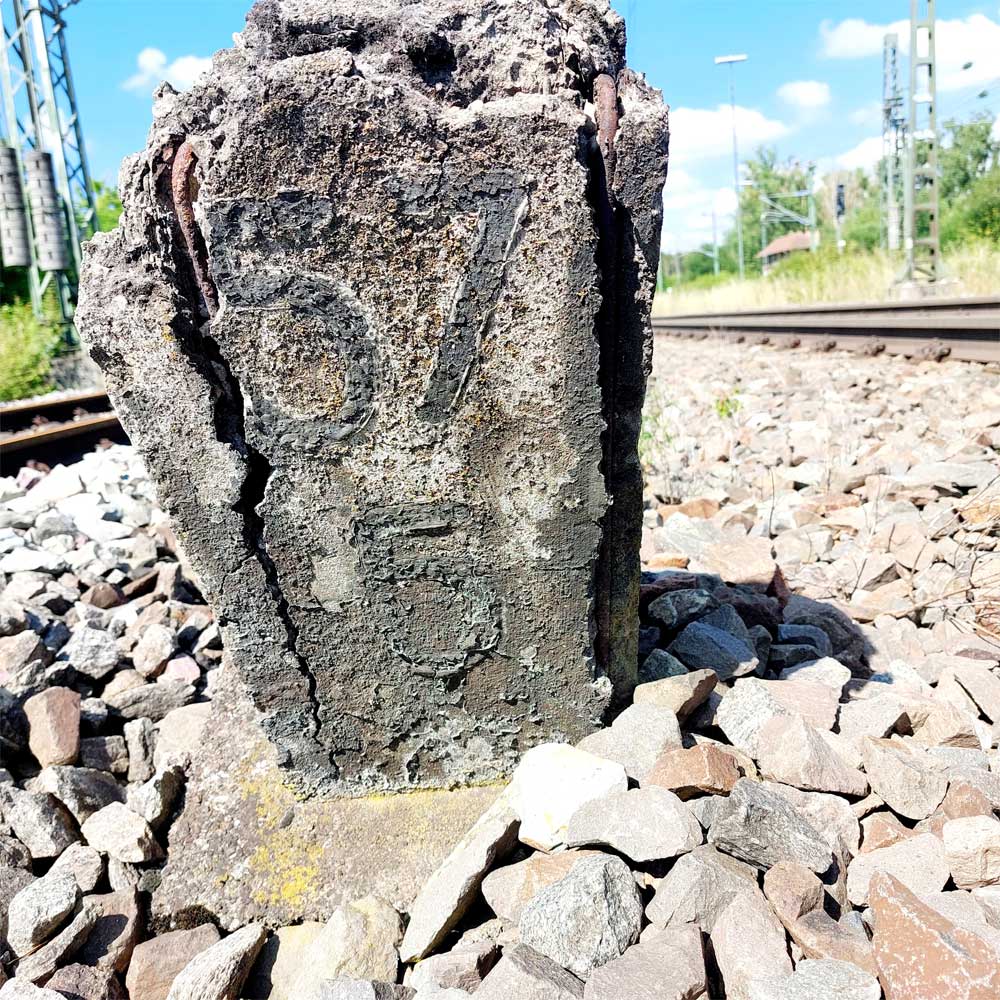 km 1,8; km 1,9 und km 2,0 (Tafeln und Steine) in Stuttart Hbf (zwischen km 1,6 und km 2,1 nur eingleisig)