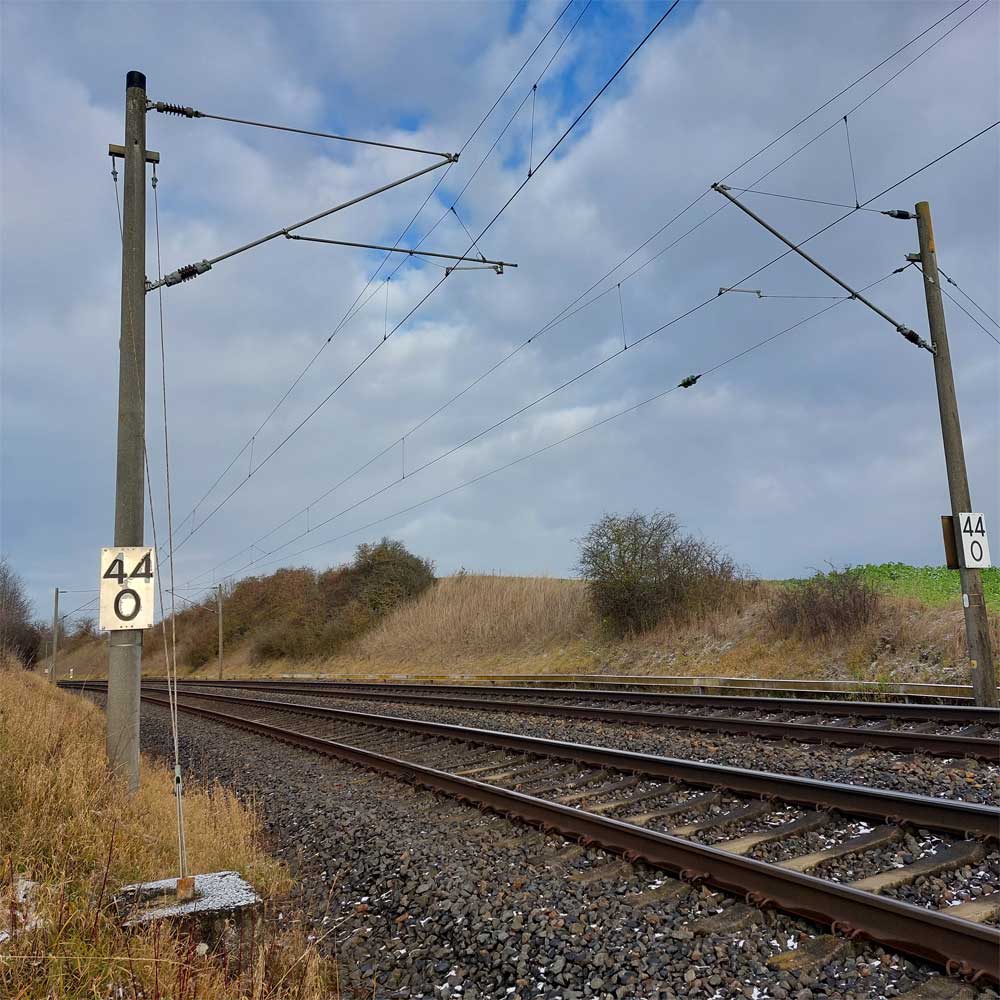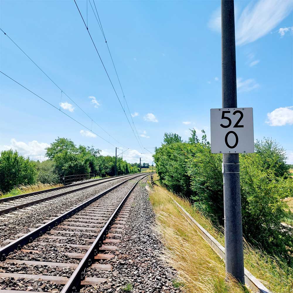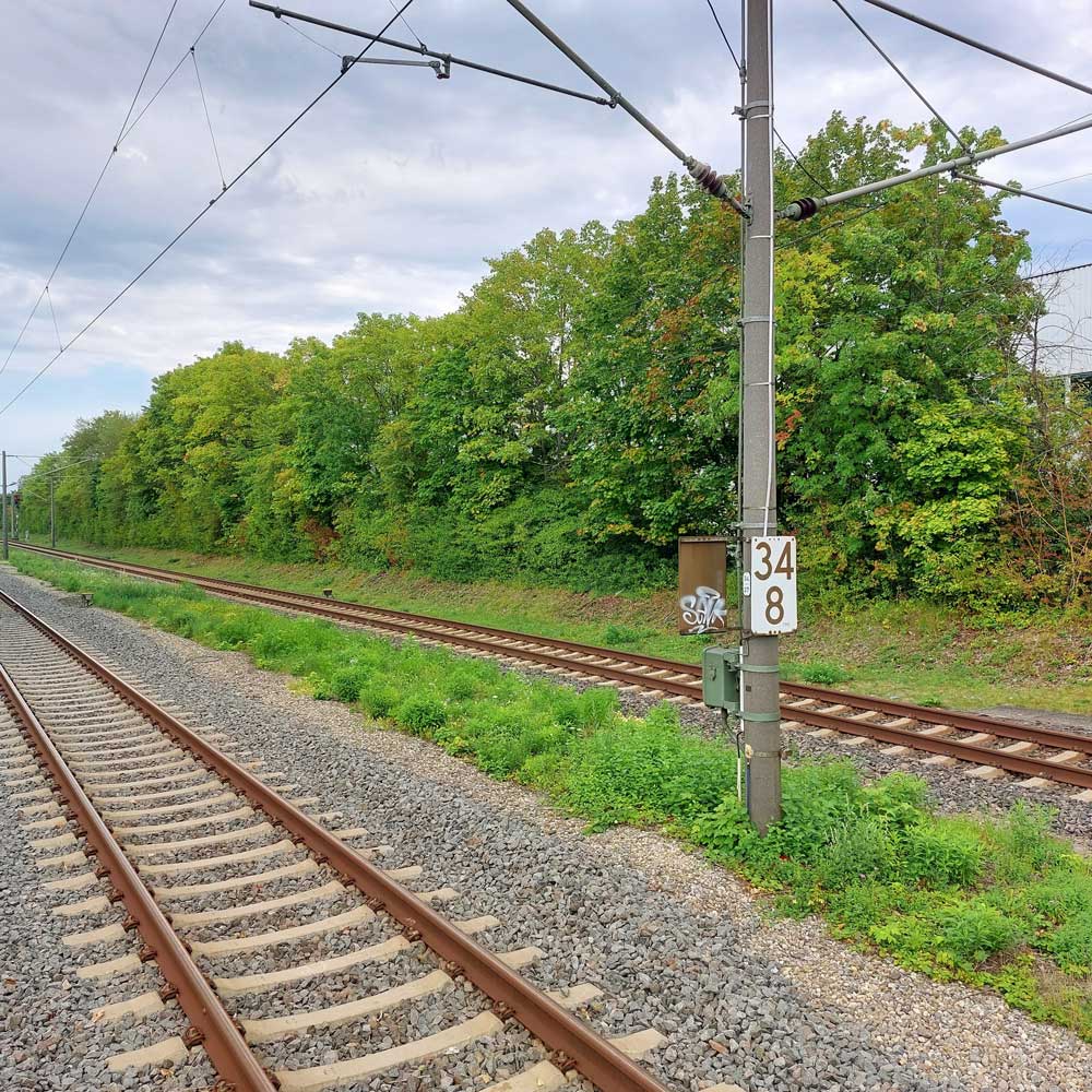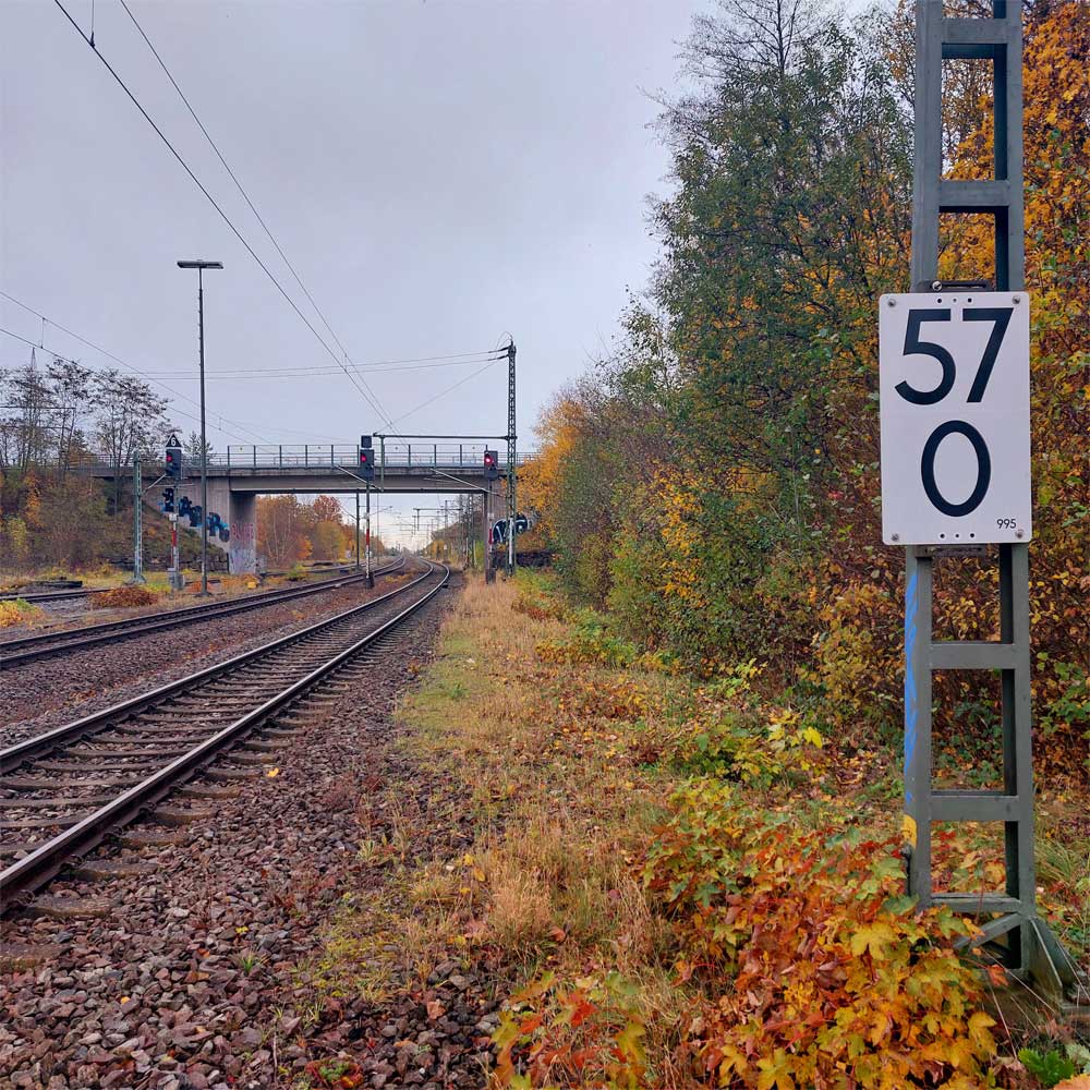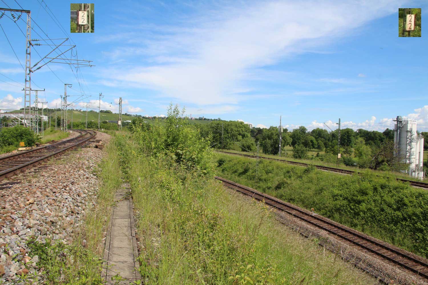 Rechts km 2,4 (Gegenrichtungs- und Richtungsgleis) der Strecke