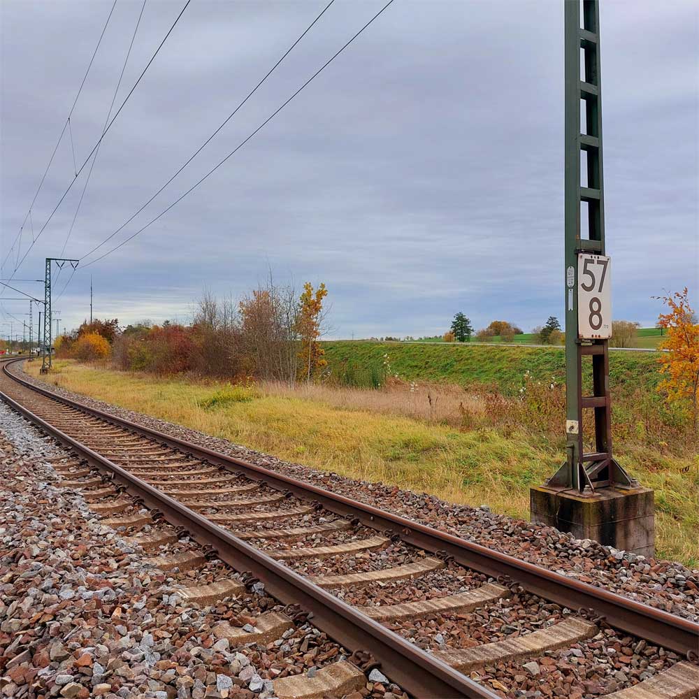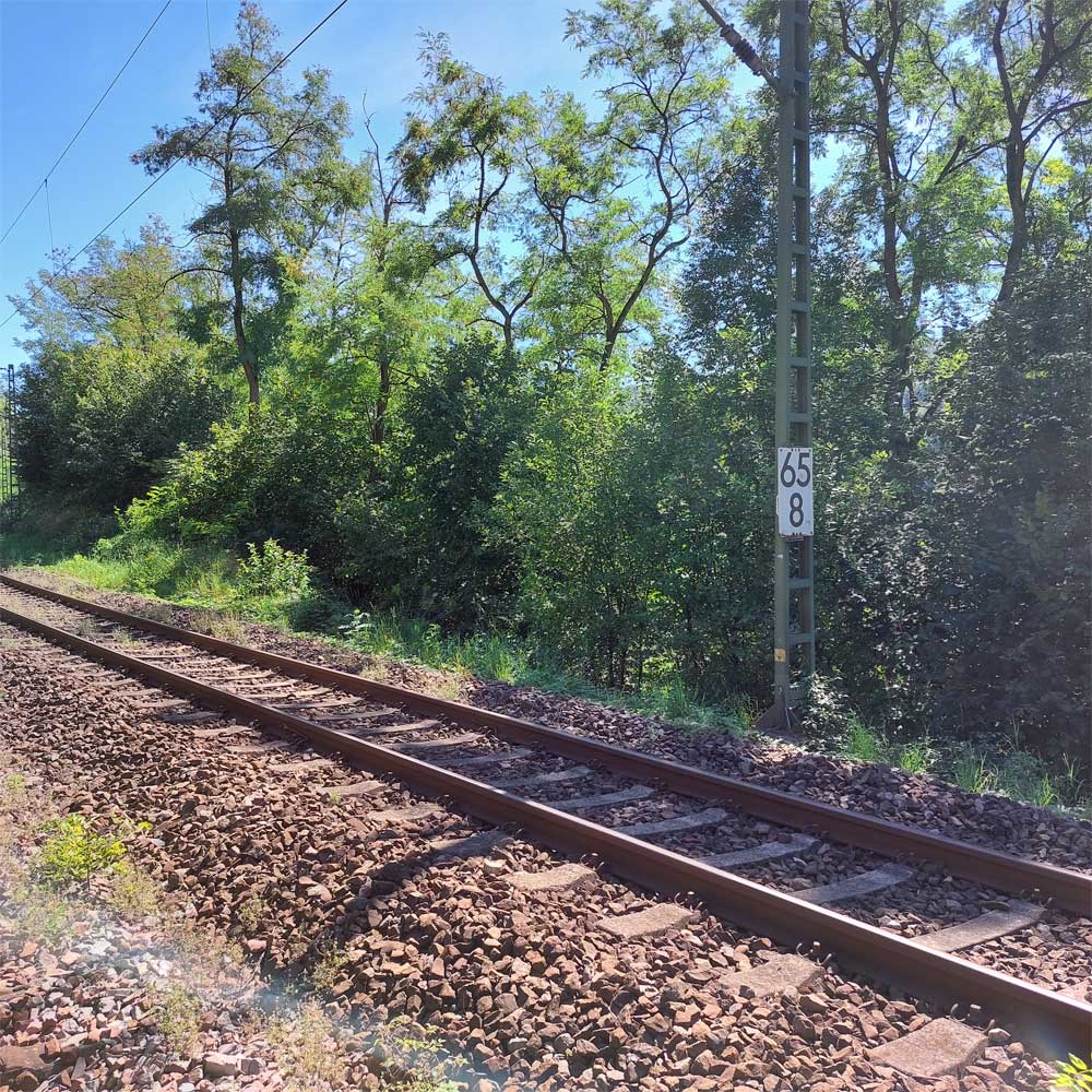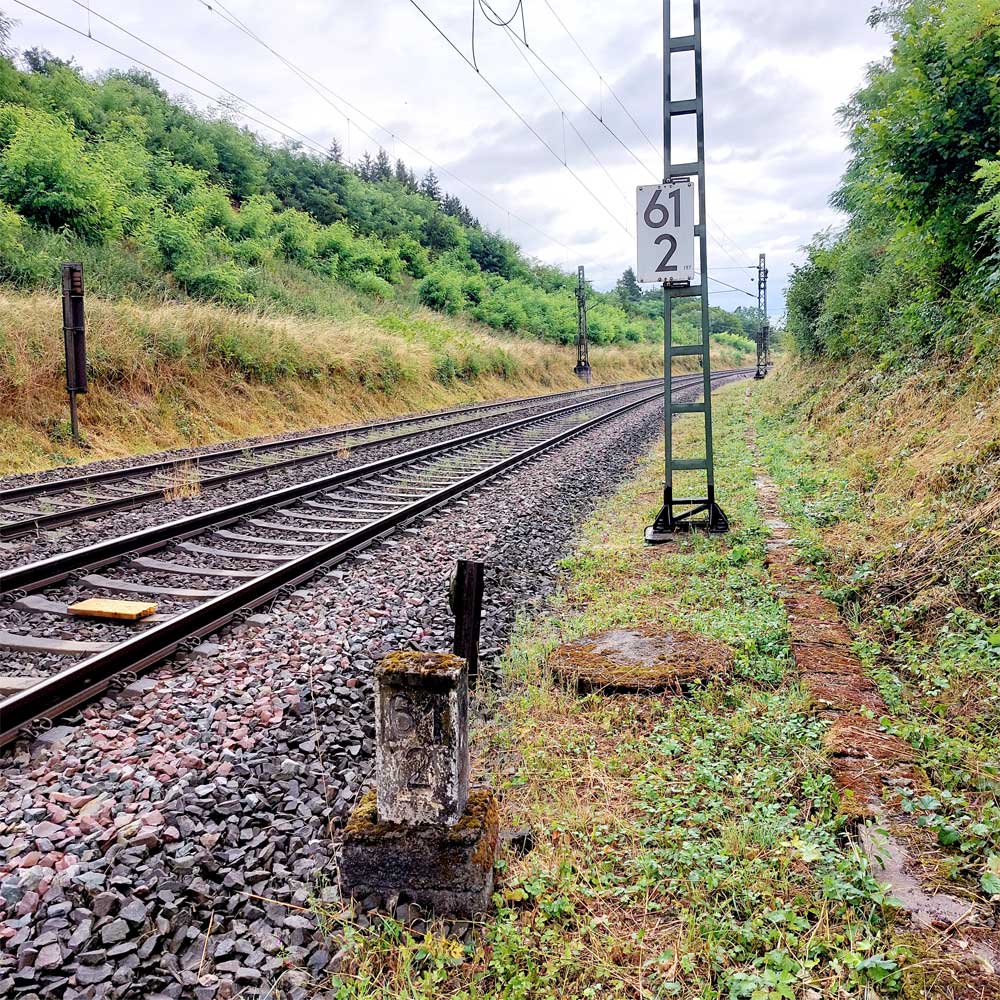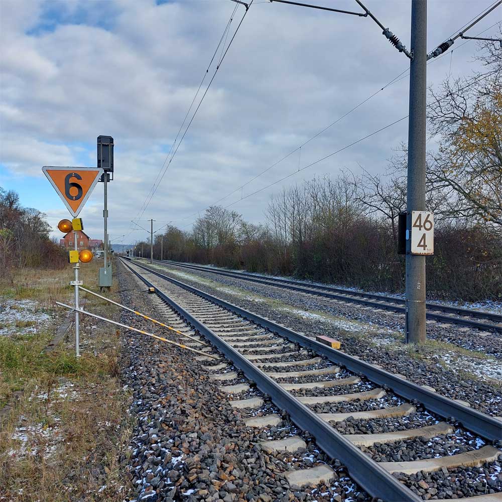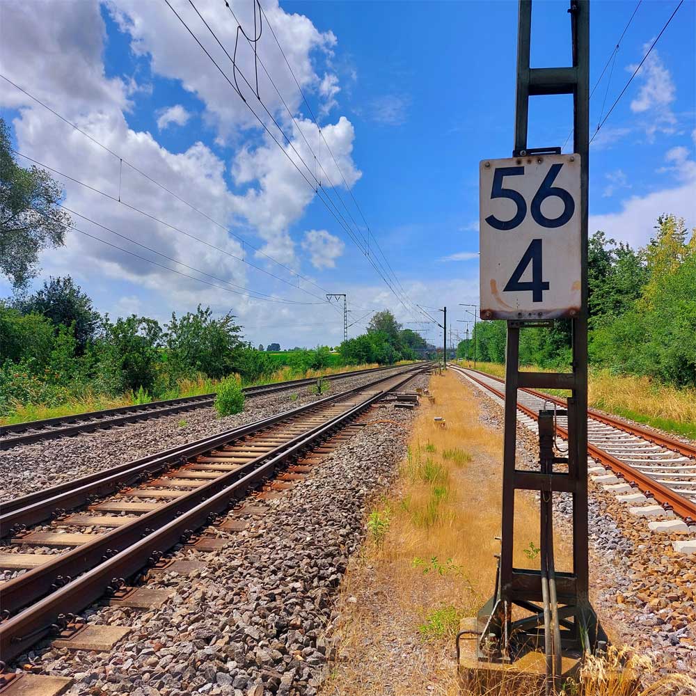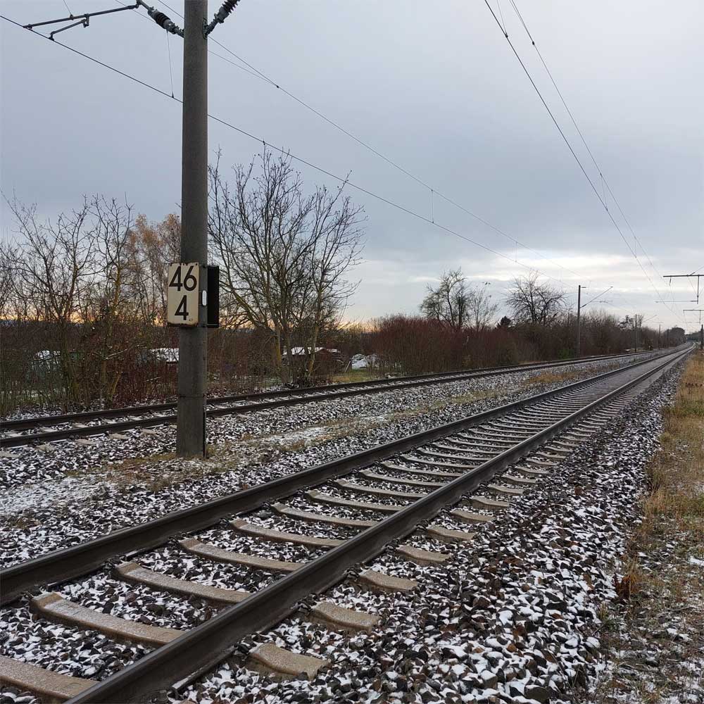 Rechts km 2,4 (Gegenrichtungs- und Richtungsgleis) der Strecke