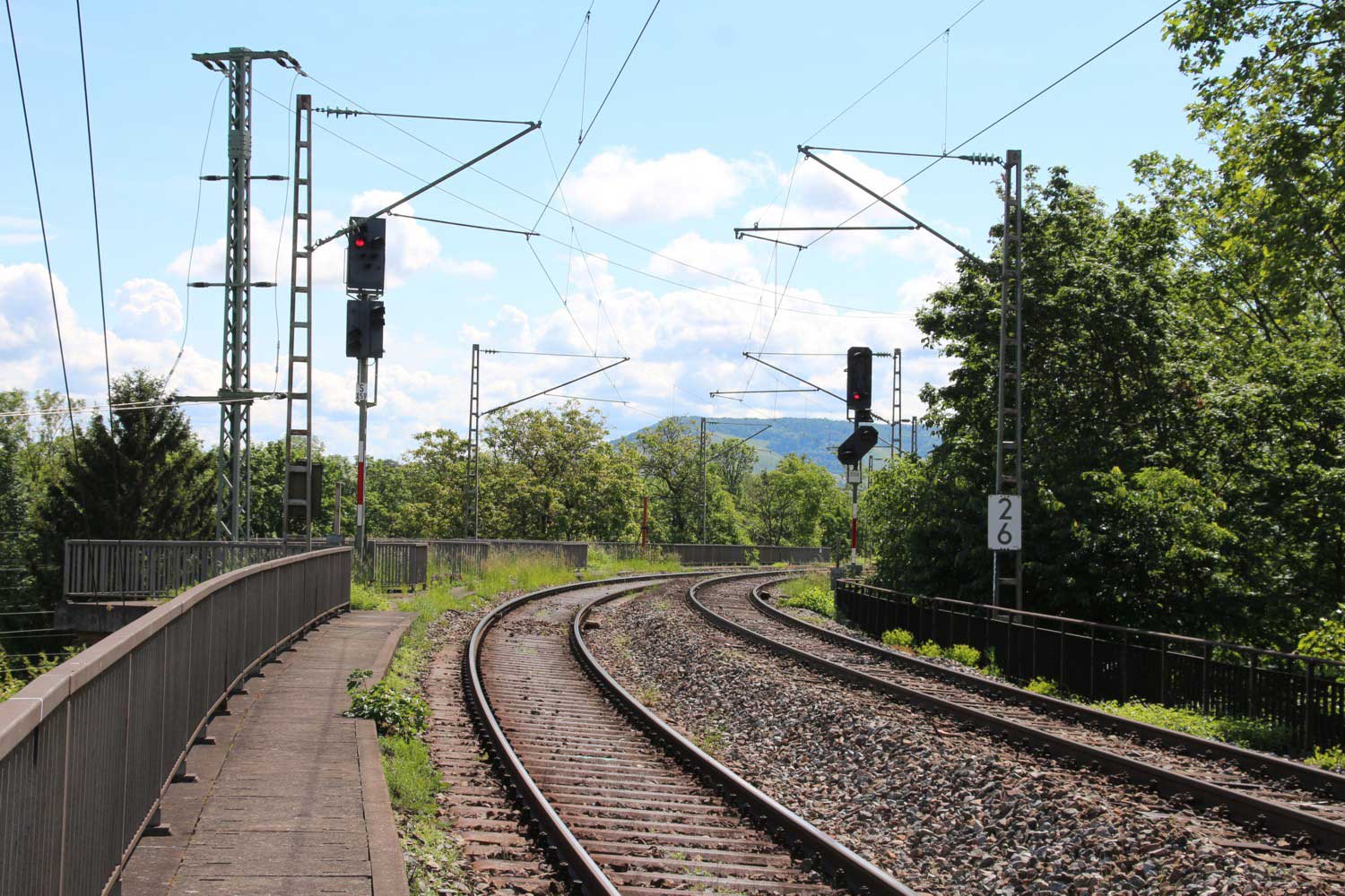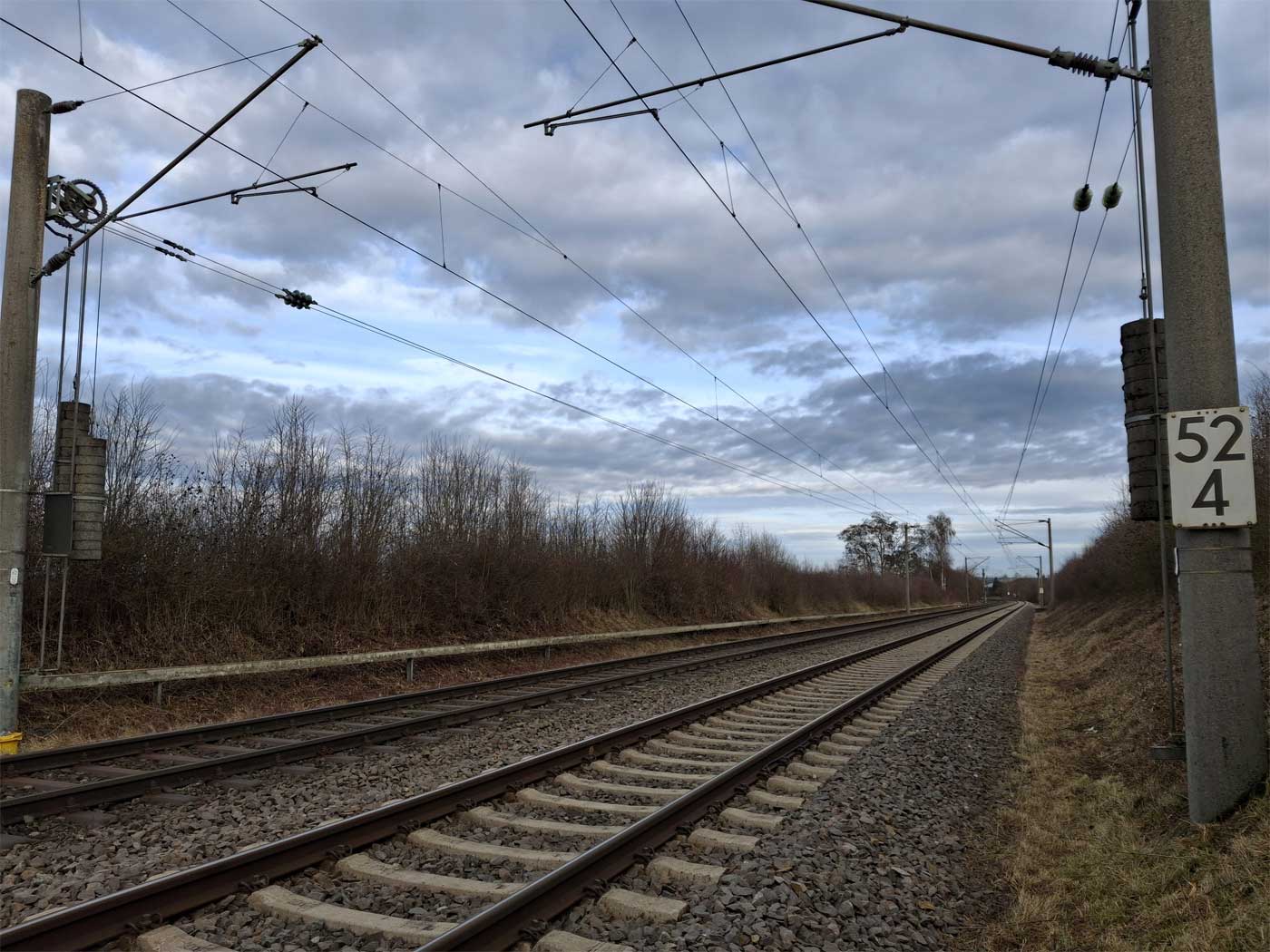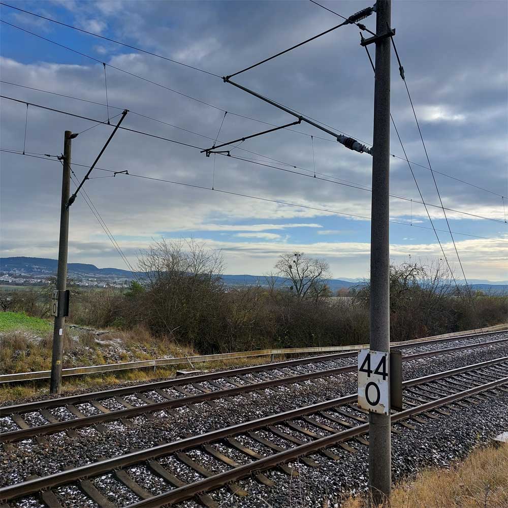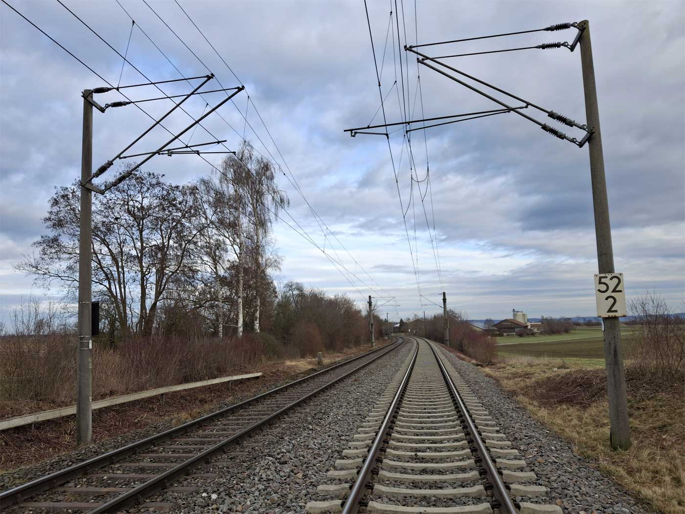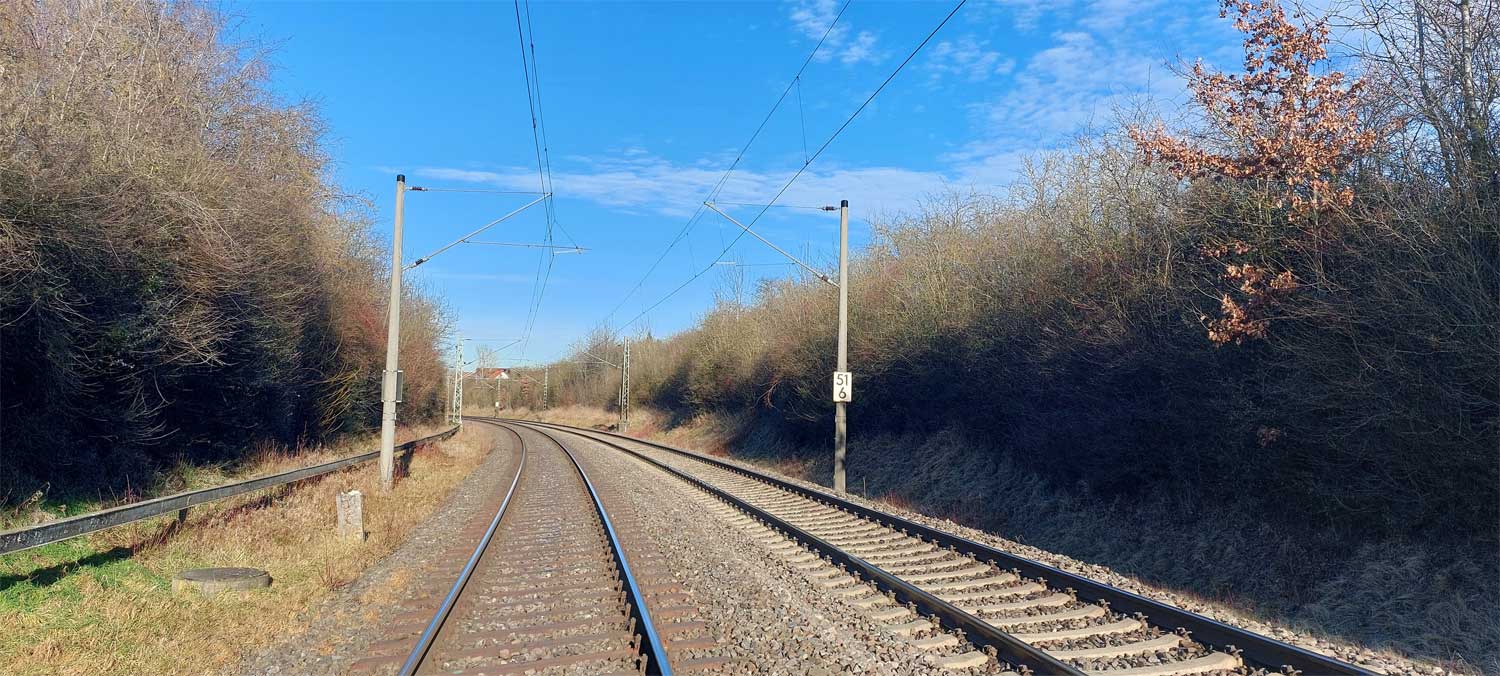 Rechts km 2,4 (Gegenrichtungs- und Richtungsgleis) der Strecke