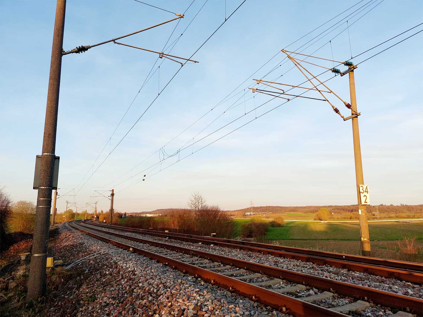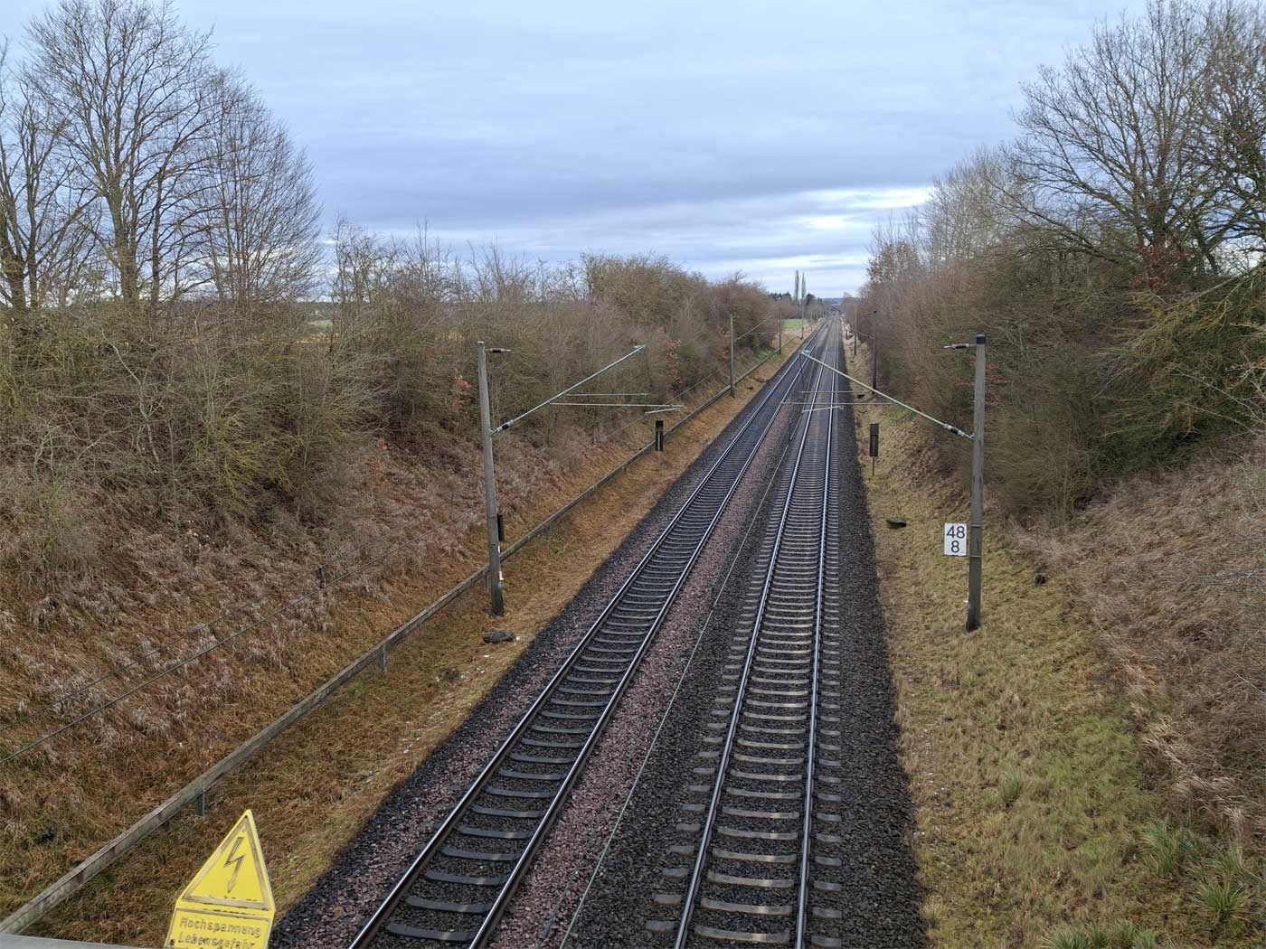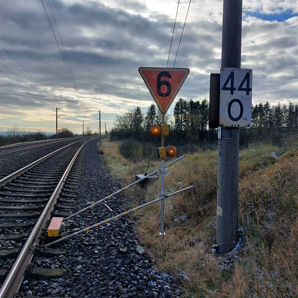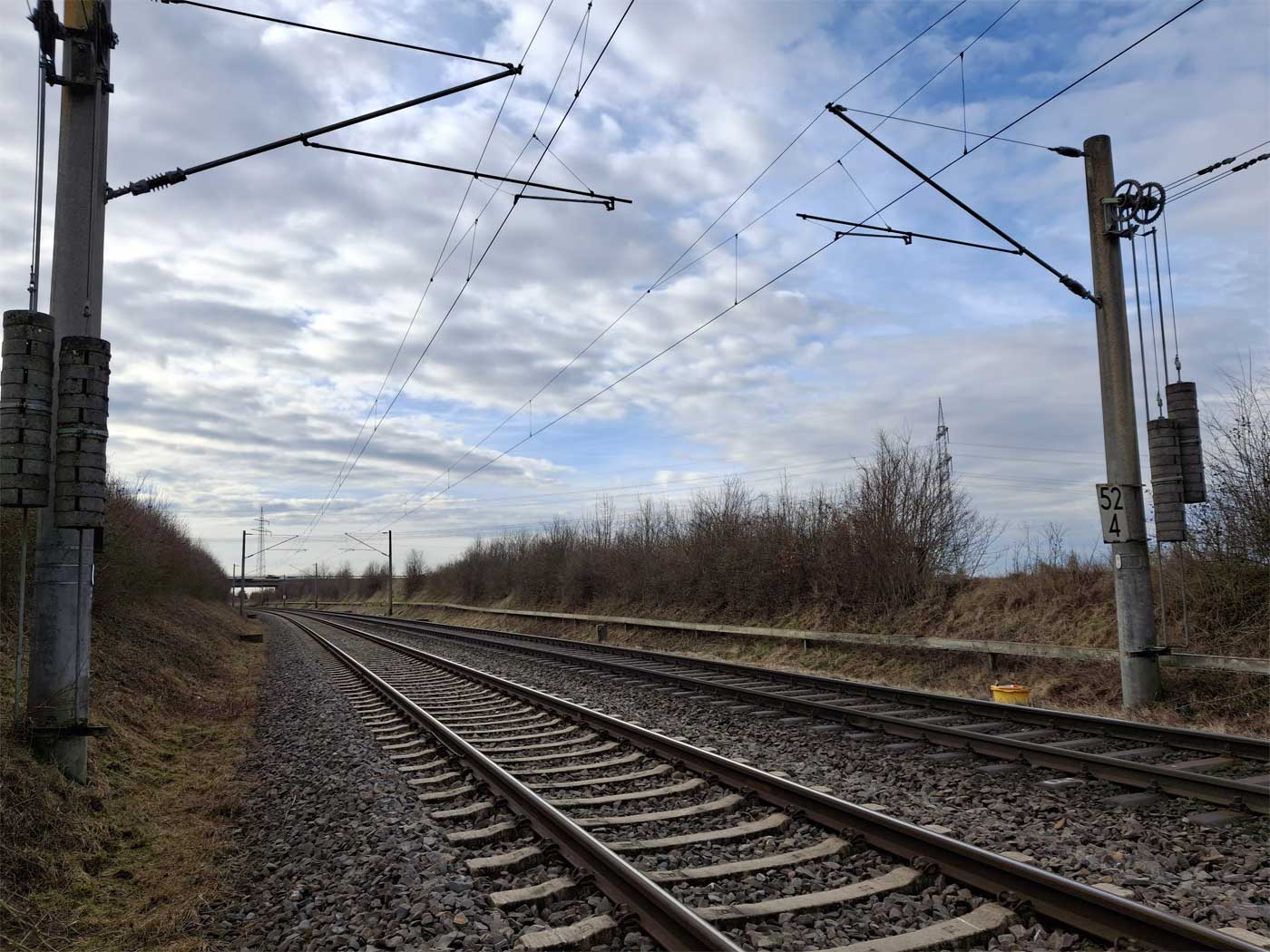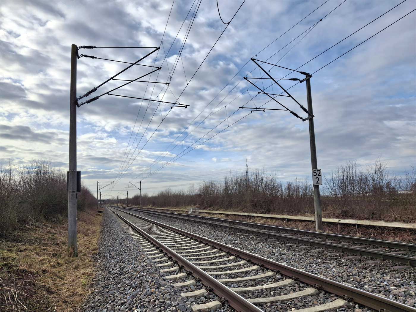 Rechts km 2,4 (Gegenrichtungs- und Richtungsgleis) der Strecke