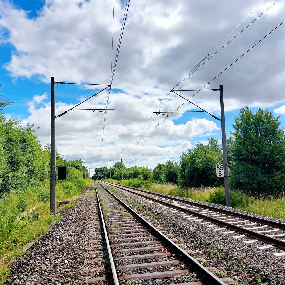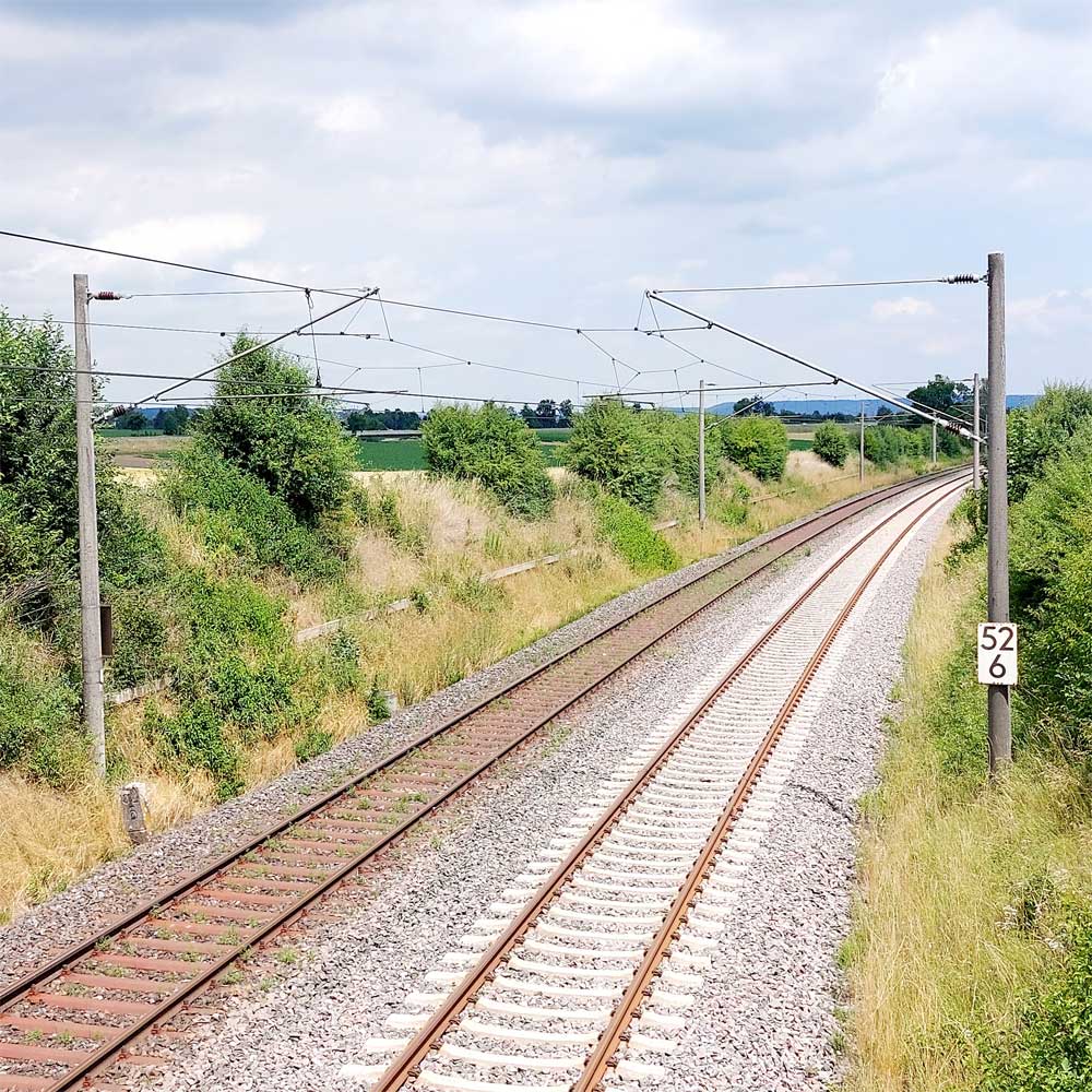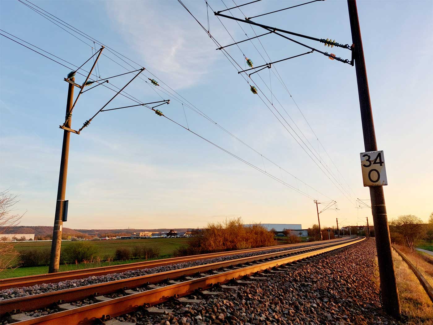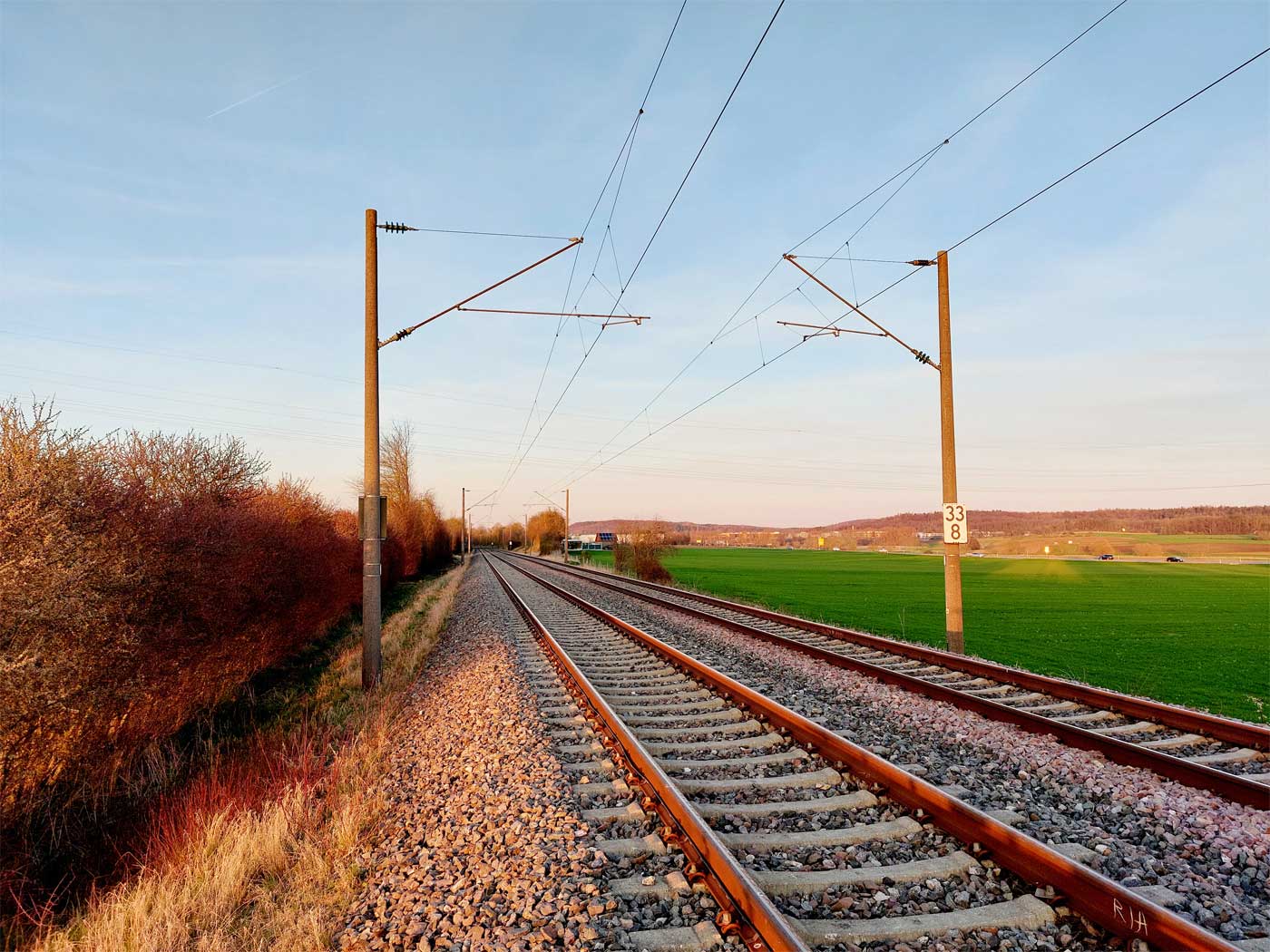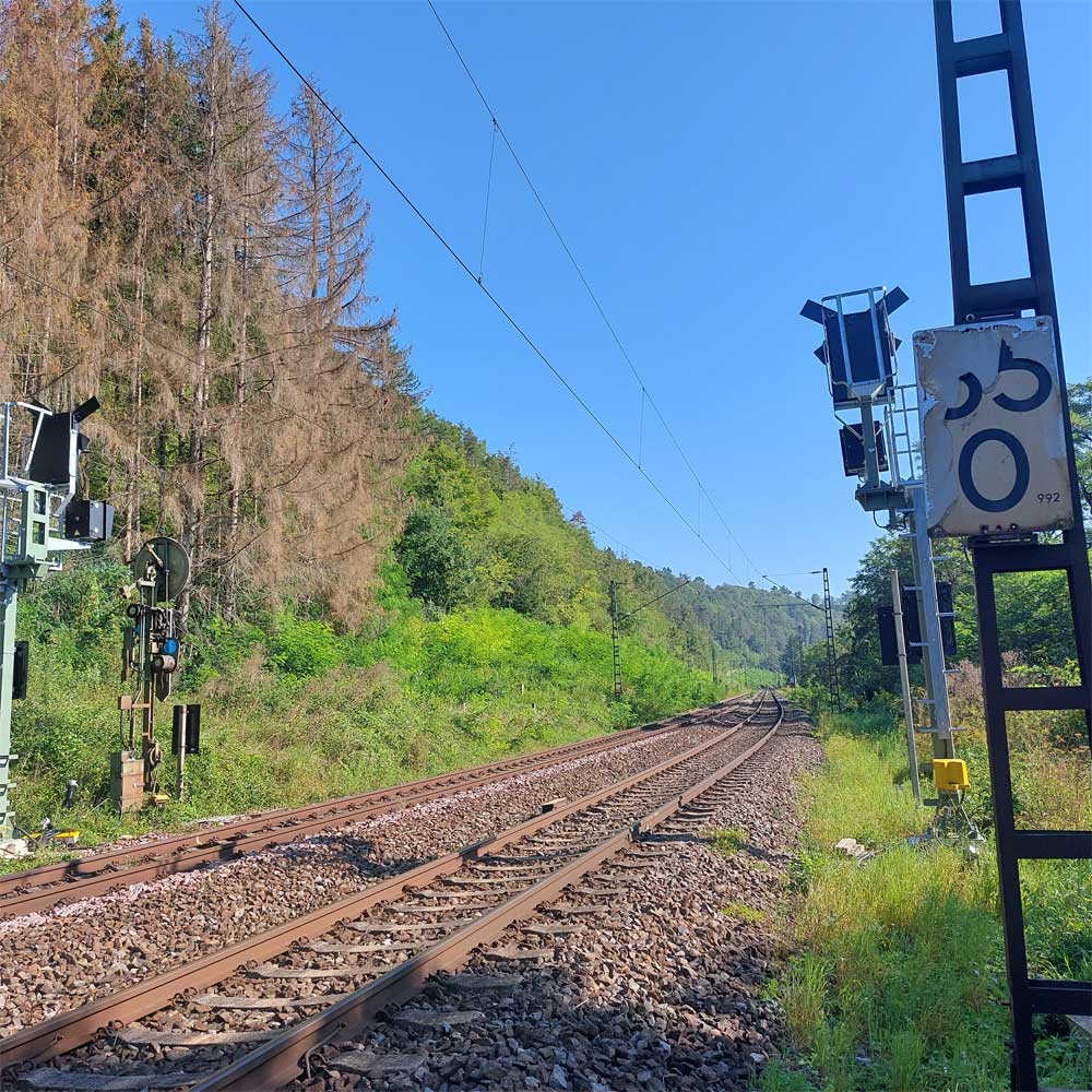 Rechts km 2,4 (Gegenrichtungs- und Richtungsgleis) der Strecke