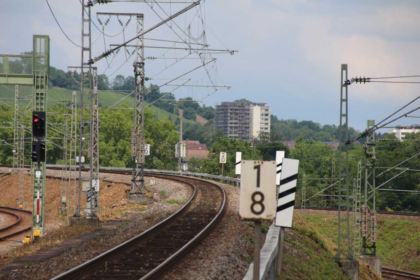 Unten links km 2,0 der Strecke Stuttgart Hbf - Bietigheim-Bissingen (4801)