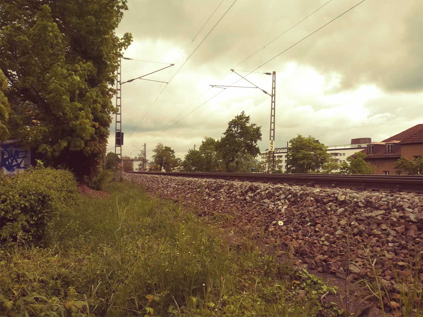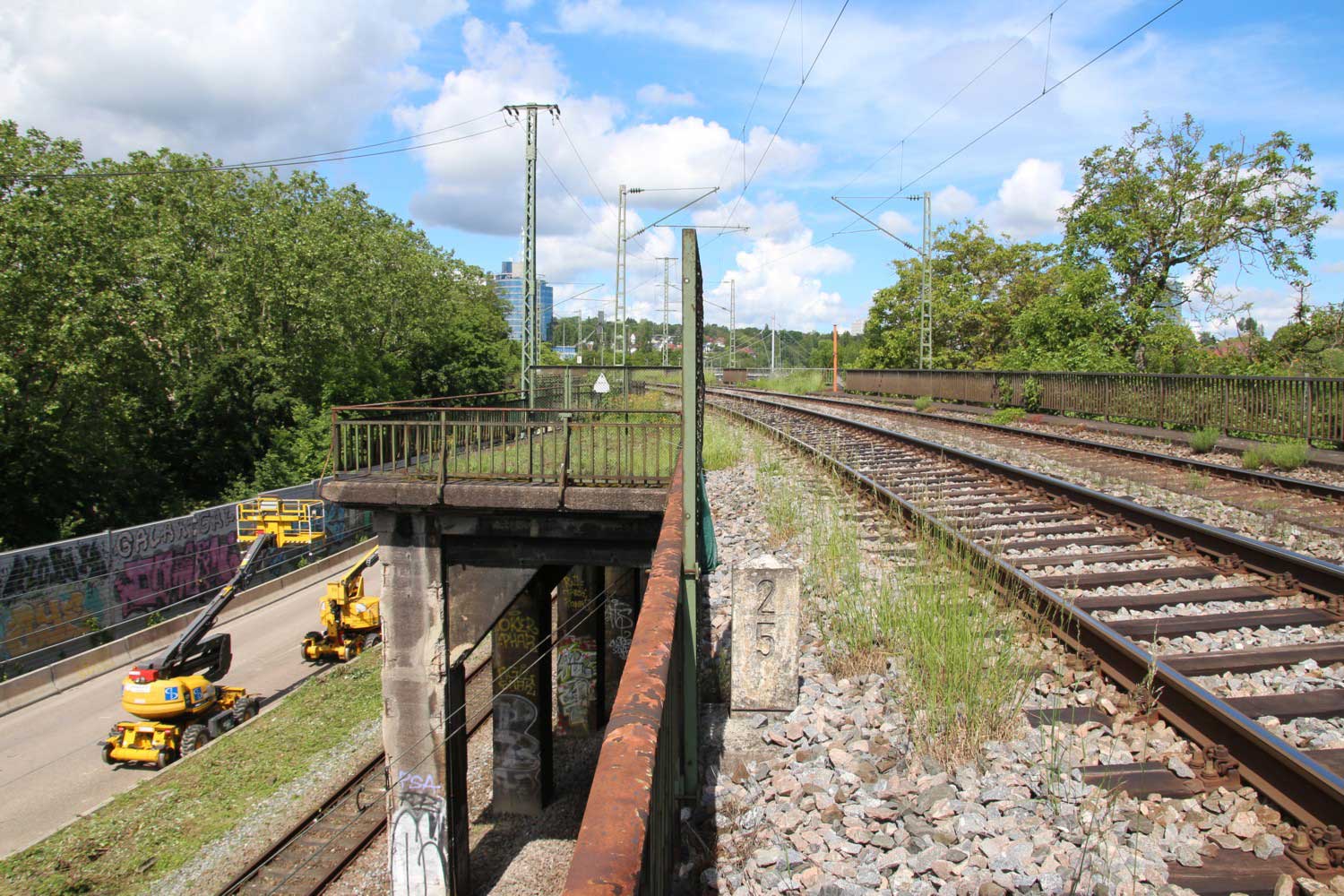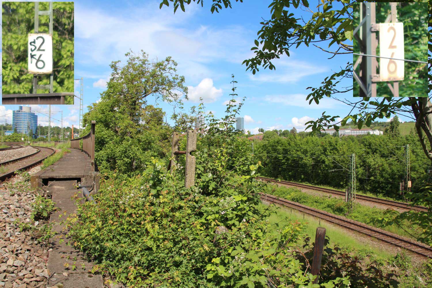 km 2,2 (links) zwischen Stuttgart Hbf und Stuttgart West - Blick Richtung Horb