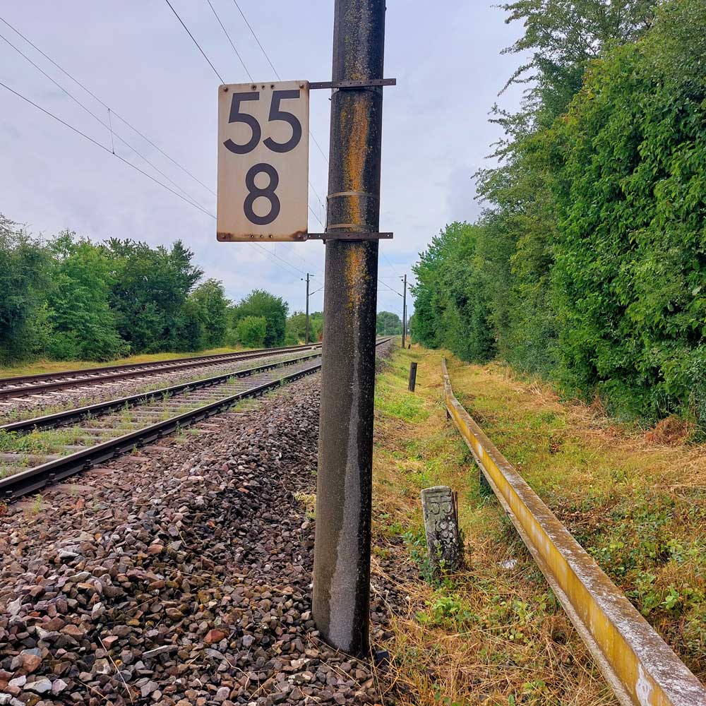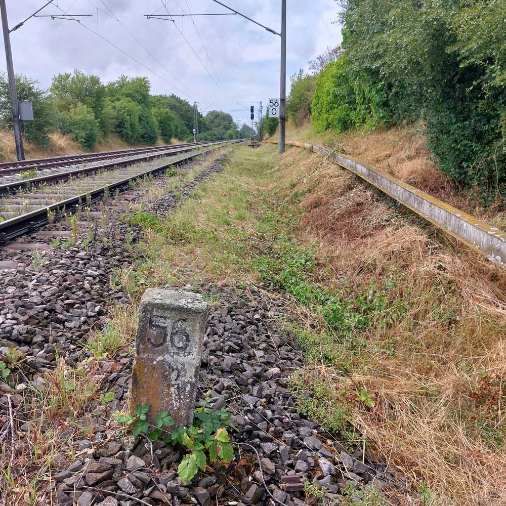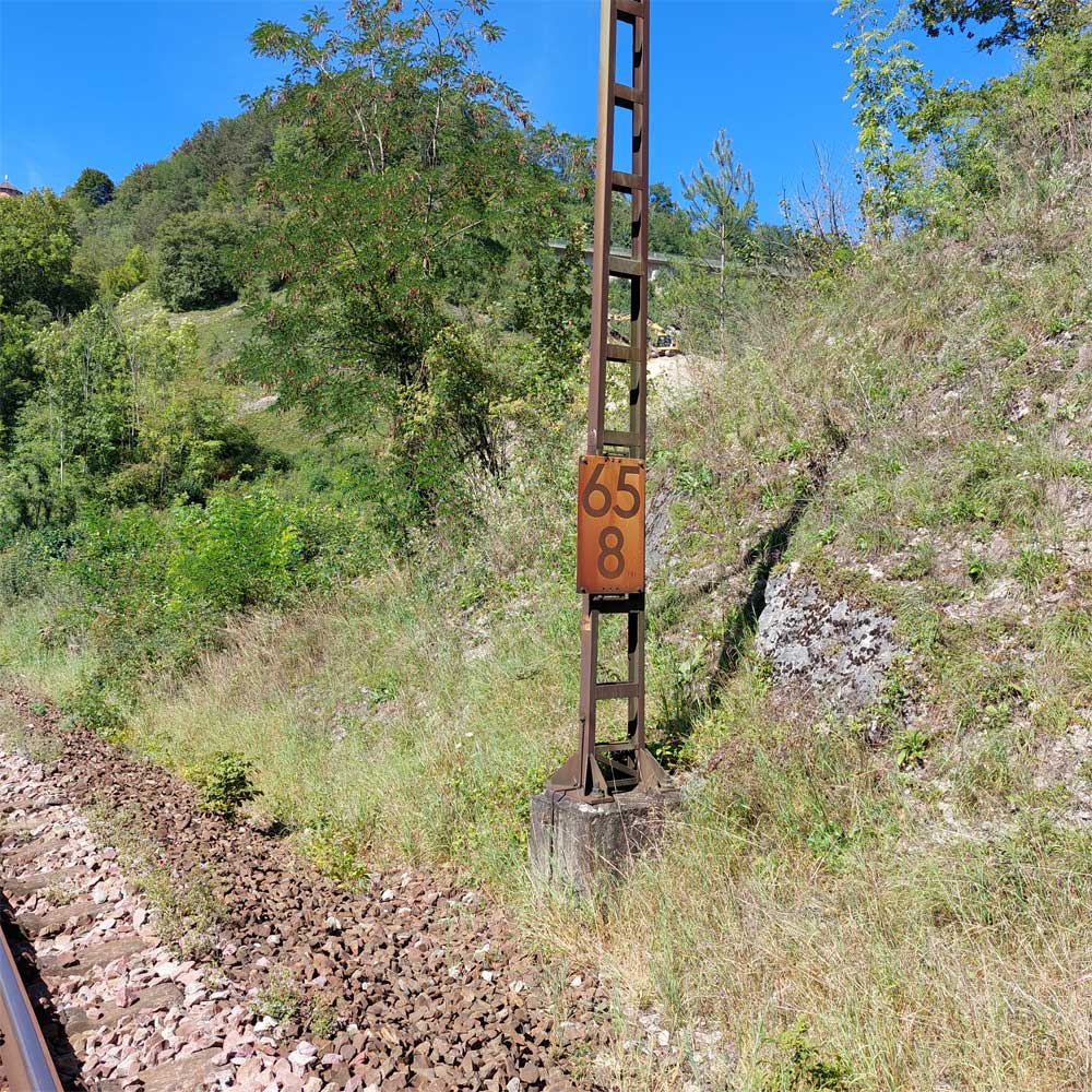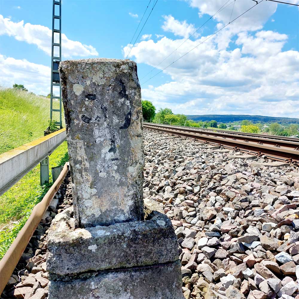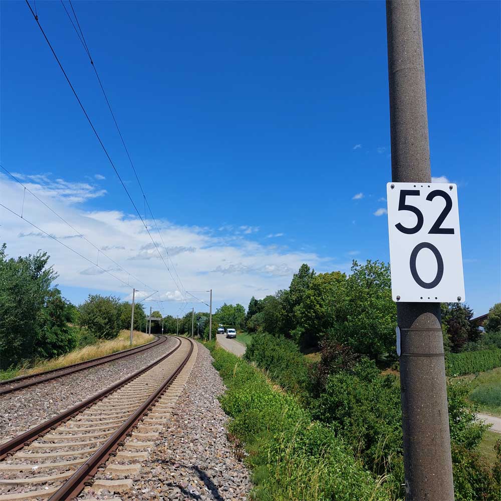 Unten km 1,0 (Gegenrichtungsgleis) der Strecke