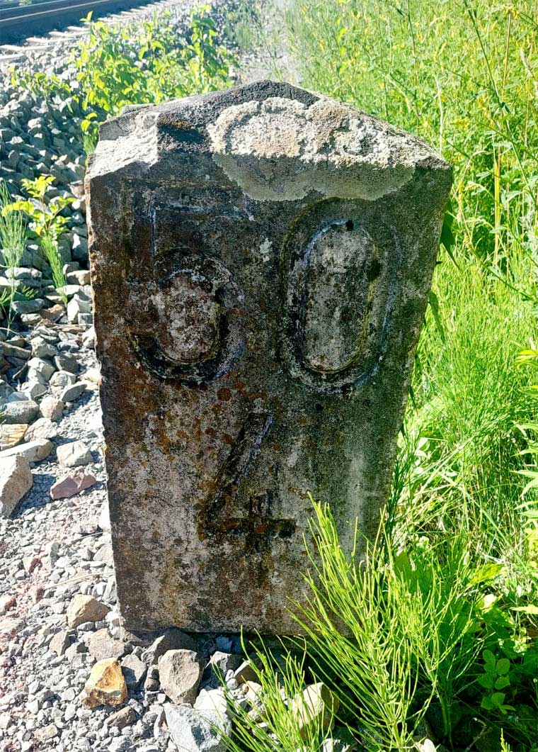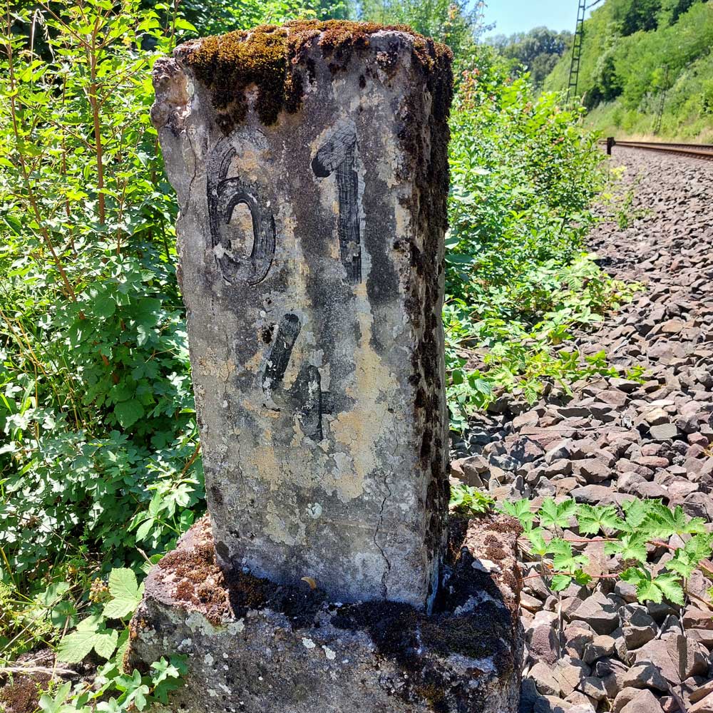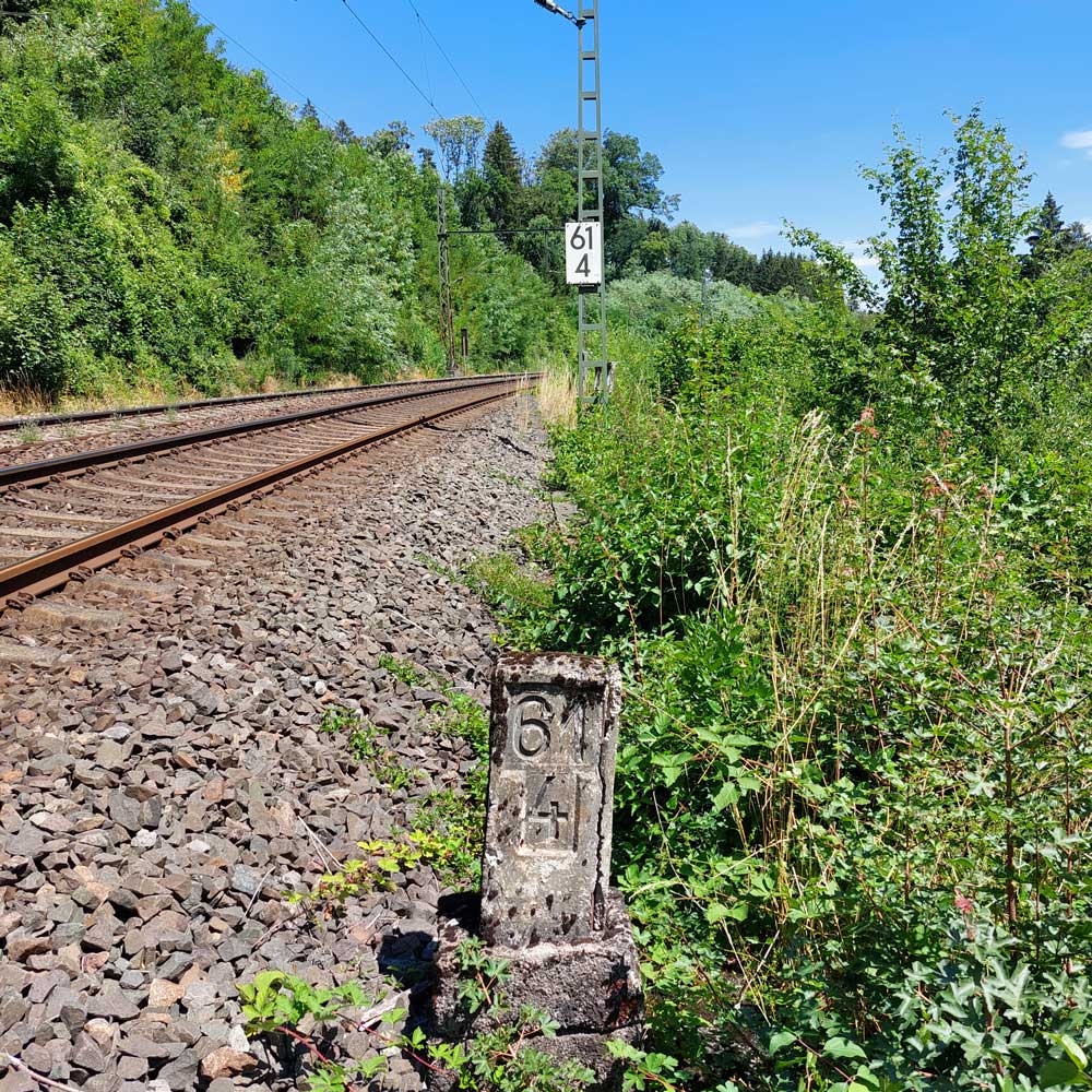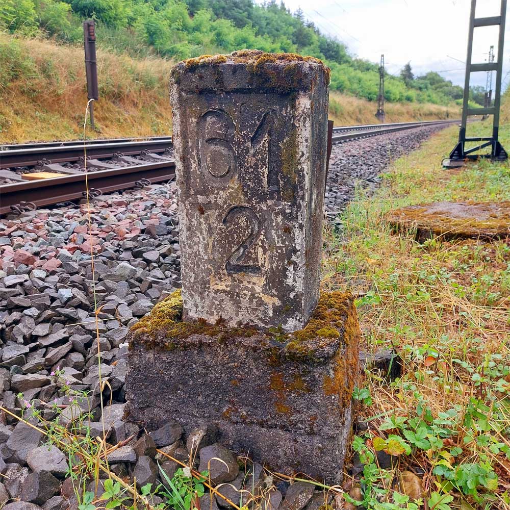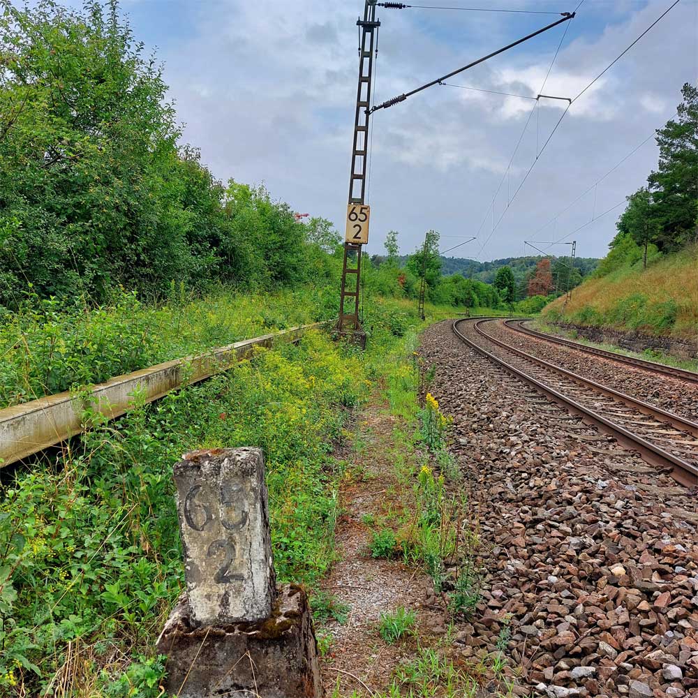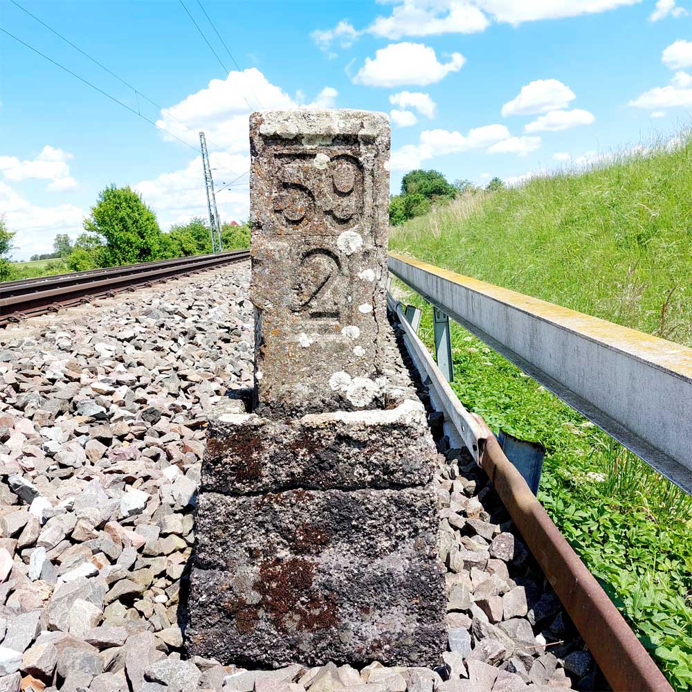Unten km 1,0 (Gegenrichtungsgleis) der Strecke