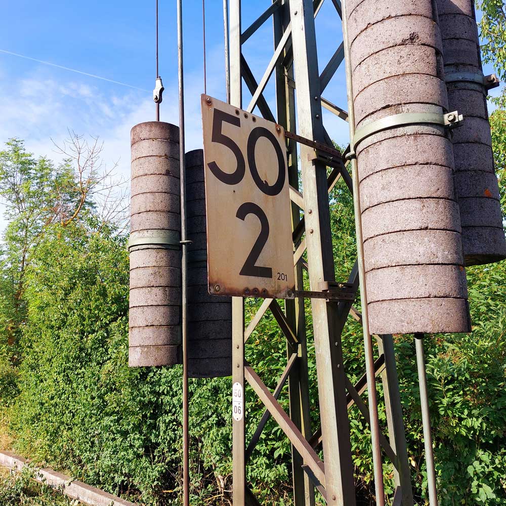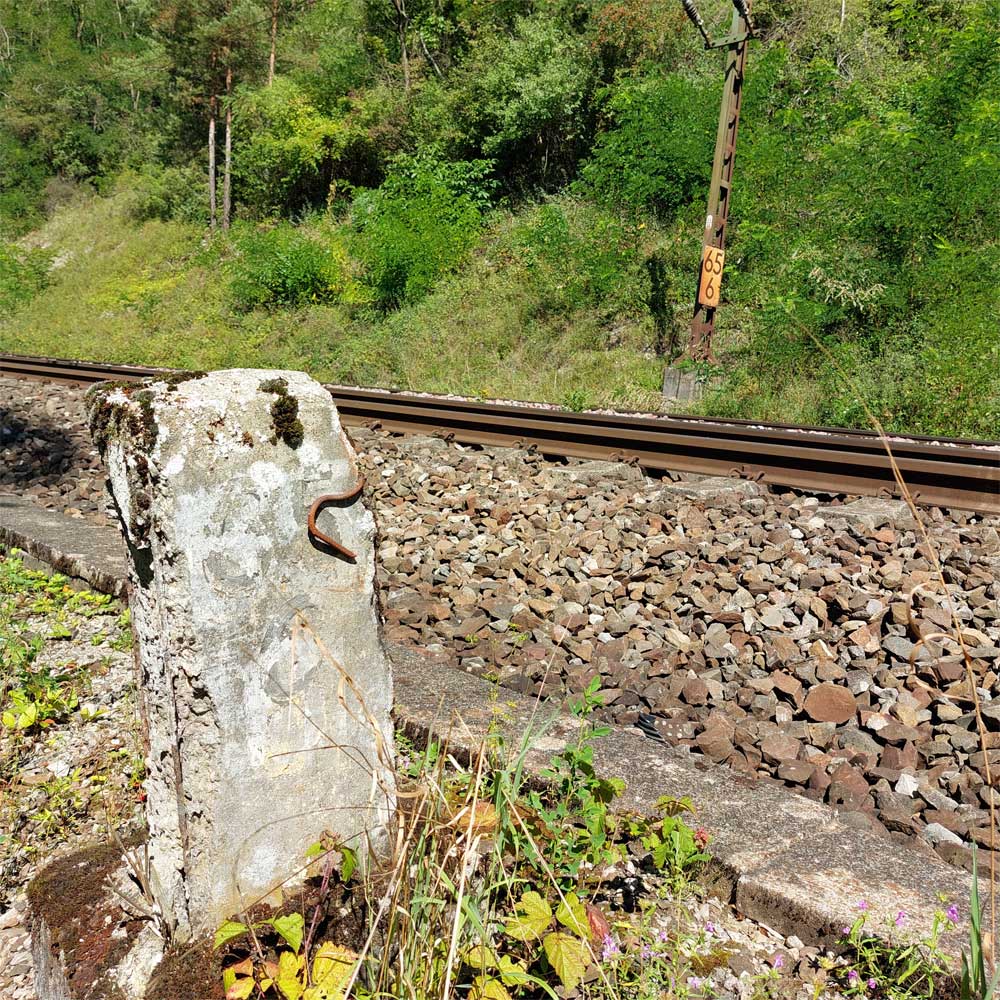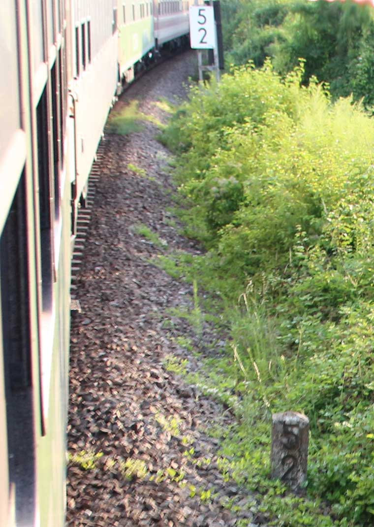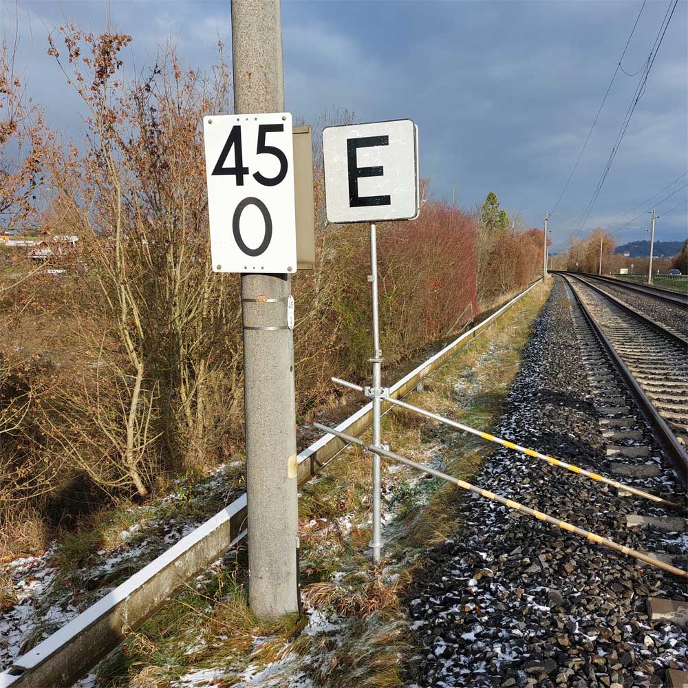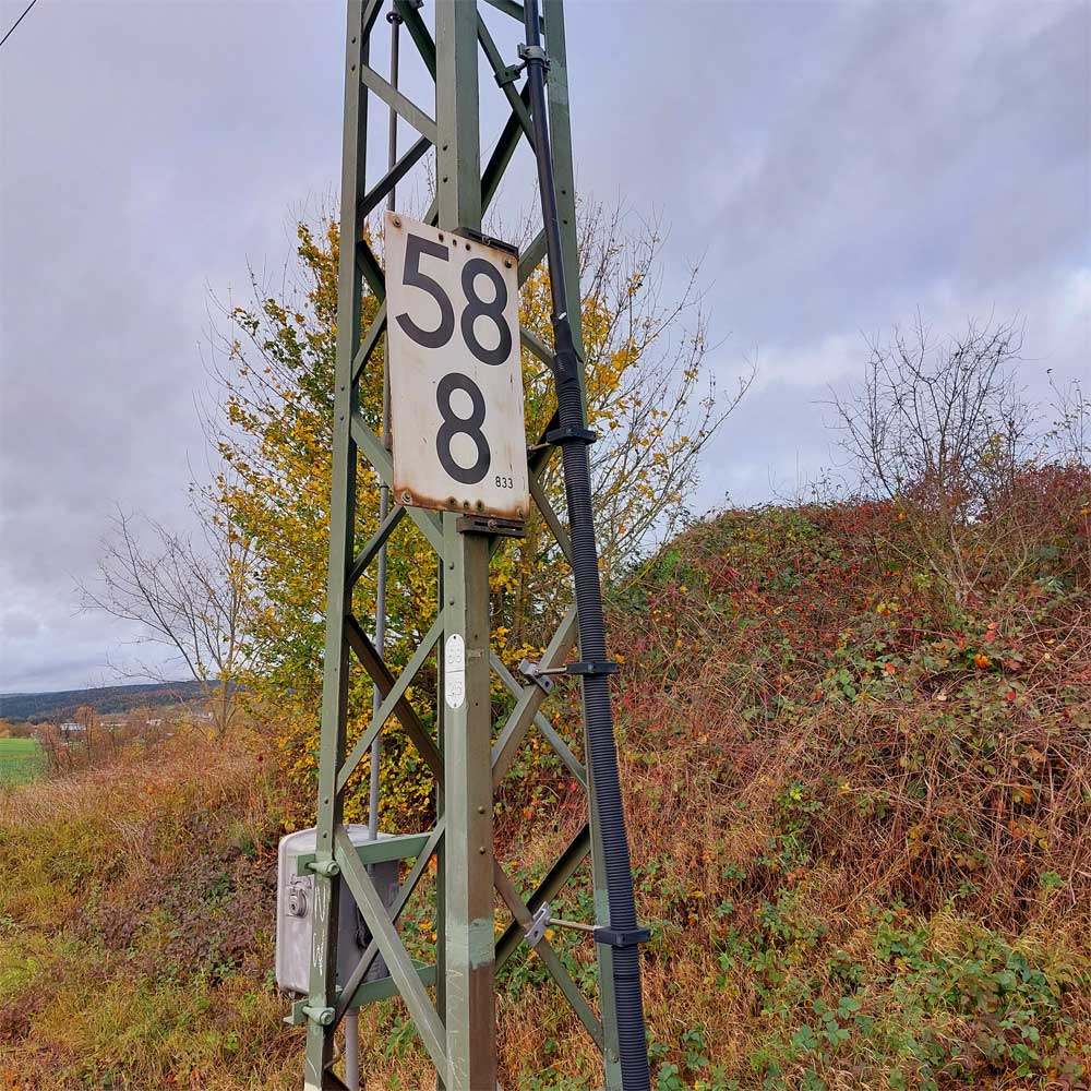 Unten km 1,0 (Gegenrichtungsgleis) der Strecke