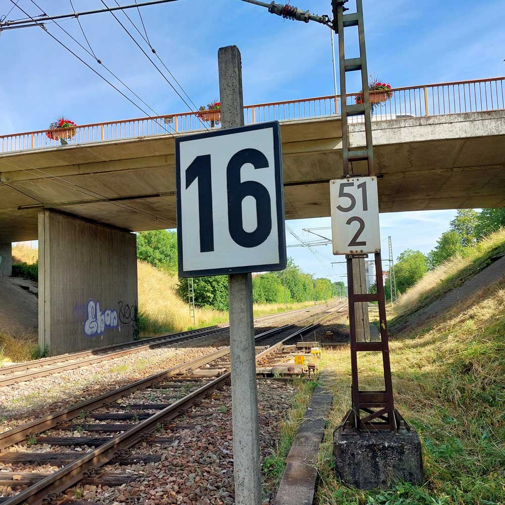 | km 1,798 der Strecke Stuttgart Hbf 0,0 - Bietigheim (Württ) 23,40 - Heilbronn Hbf 52,57 - Bad Friedrichshall-Jagstfeld 63,77 - Osterburken 101,77 | ||