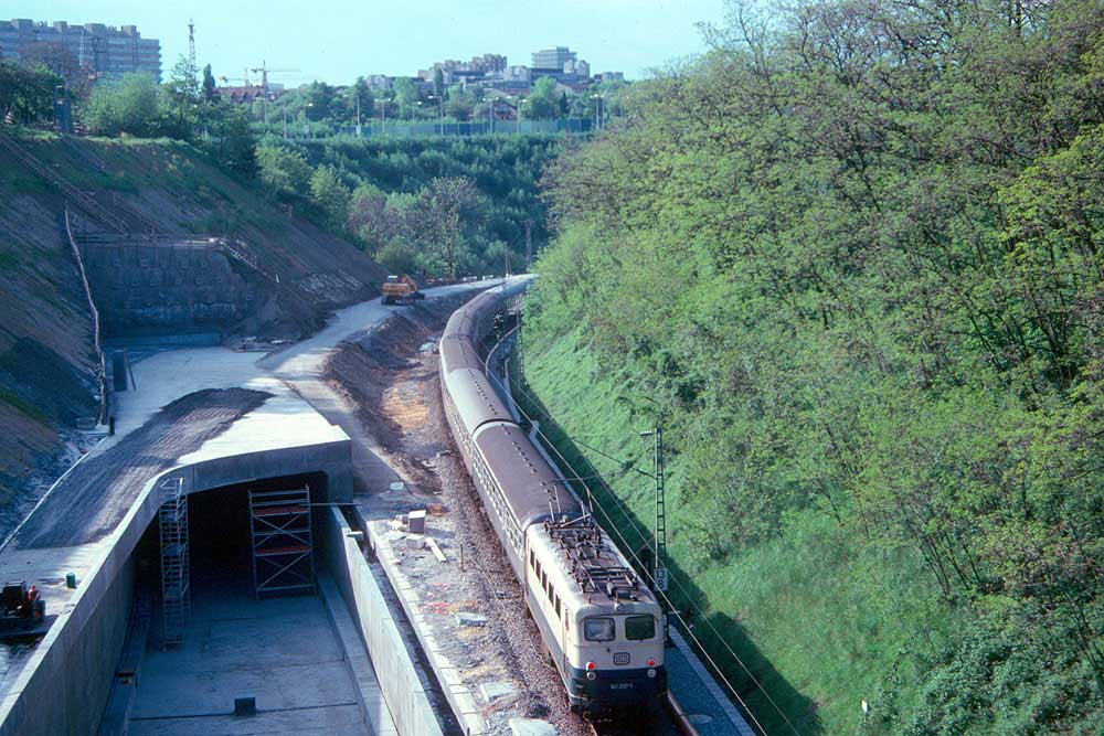 km 63,6 zwischen Eutingen (Württ) und Horb am Südwestportal des Mühlener Tunnels - Blick Richtung Stuttgart